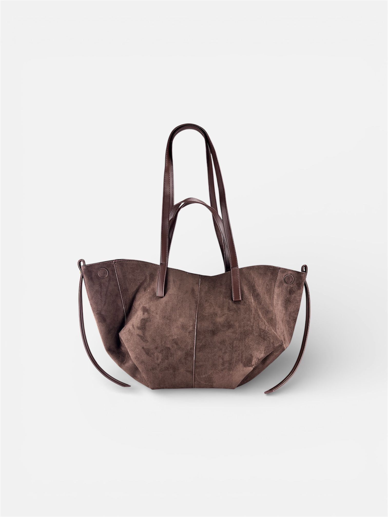 Tra le protagoniste della stagione spiccano le borse dalle forme morbide e leggermente allargate, pensate per unire stile e funzionalità. Realizzate in suede, conquistano per il loro aspetto materico e sofisticato, perfettamente in linea con il ritorno delle texture naturali e dei toni caldi.