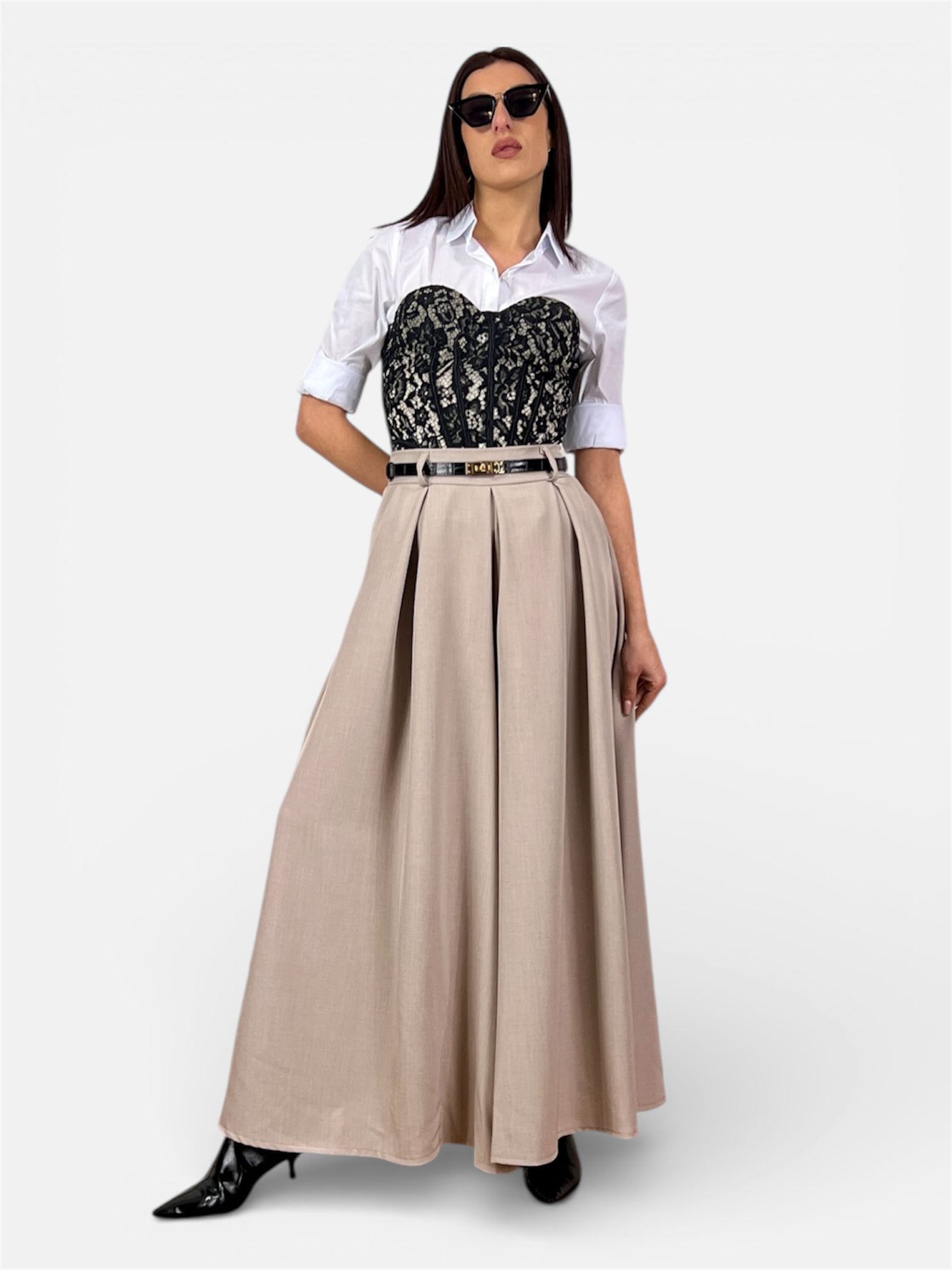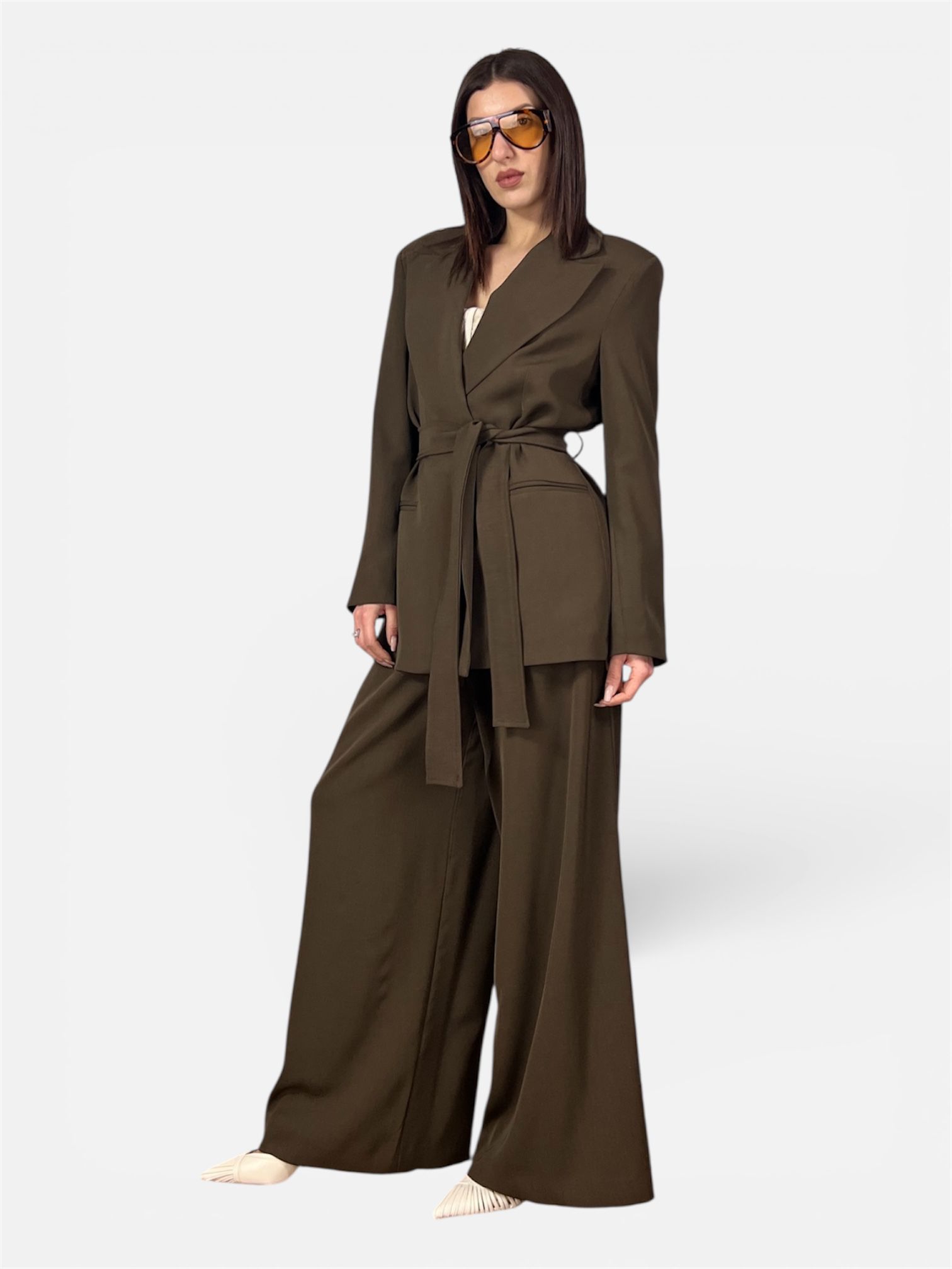 I completi di stagione si distinguono per linee fluide e sofisticate, dove il tailoring incontra una nuova idea di femminilità rilassata. Protagonisti i blazer con cintura, che valorizzano il punto vita e ridisegnano la silhouette in modo elegante e contemporaneo, trasformando il classico completo in un look più dinamico e attuale.