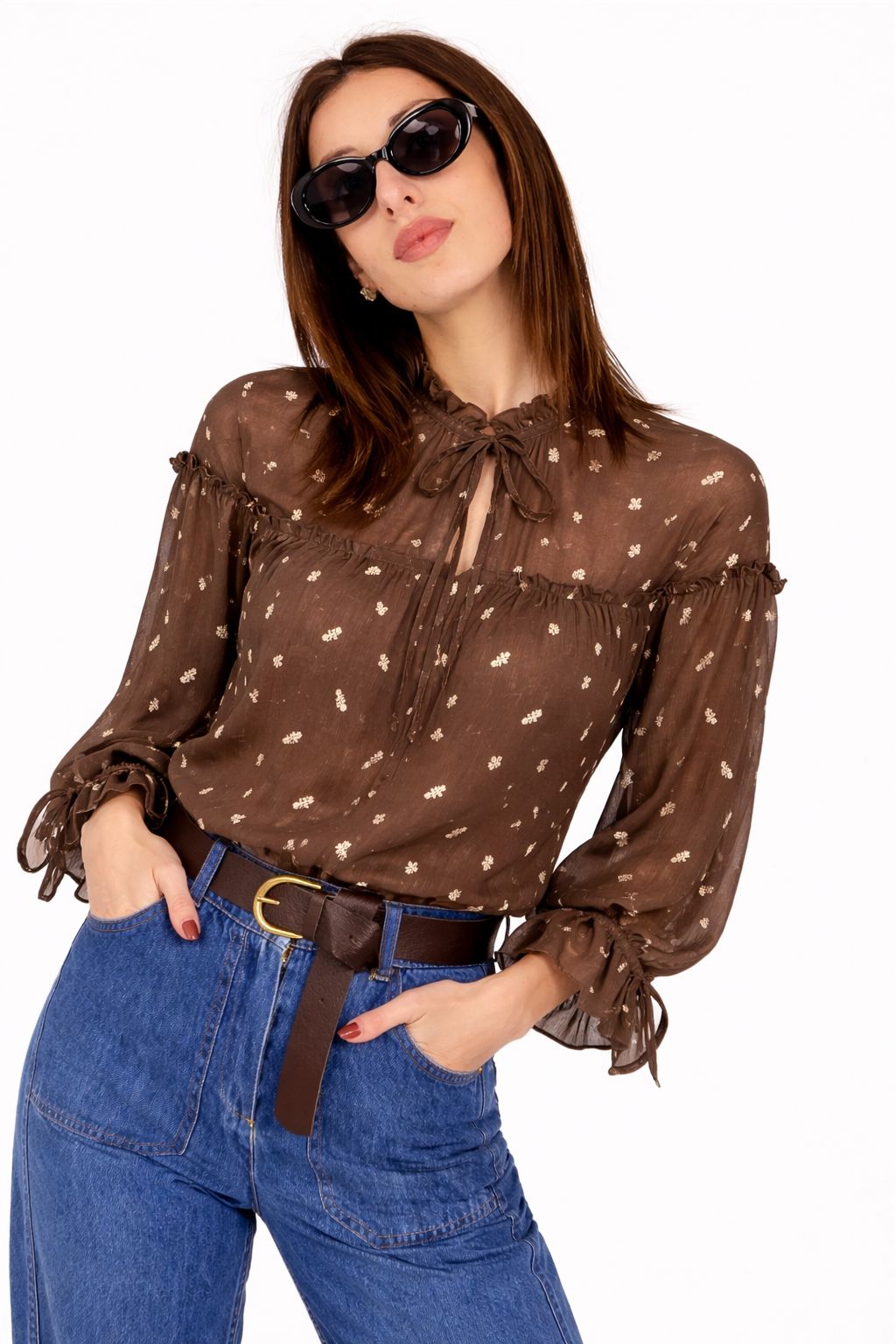 Blusa Chiffon Microfiori Ricamati marrone,burro,celeste SUSY MIX