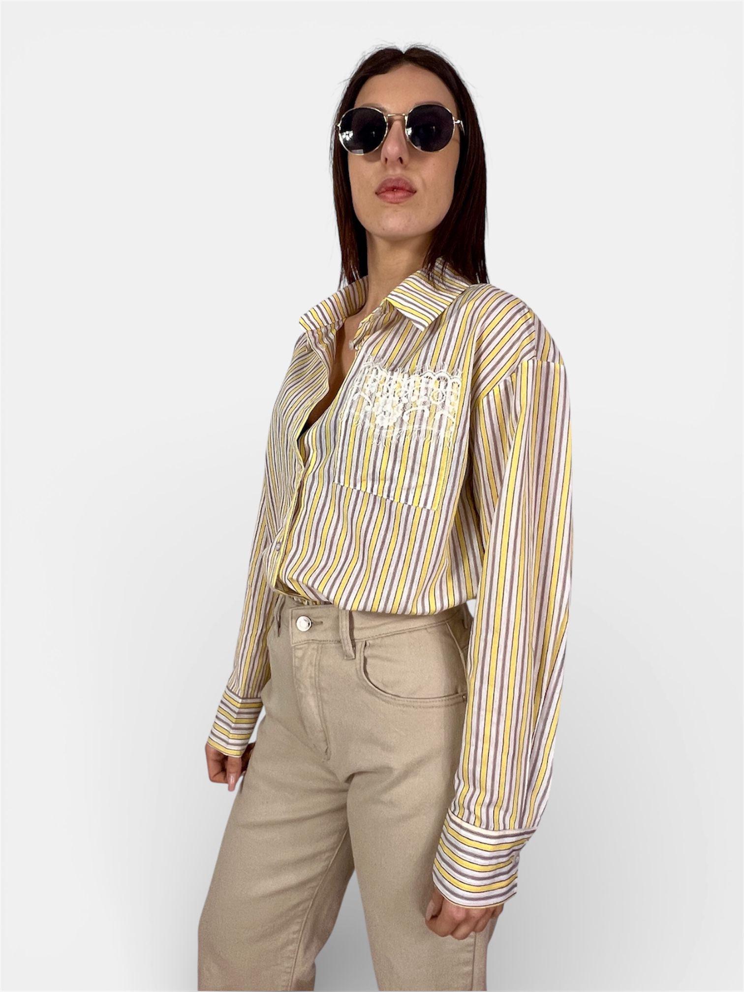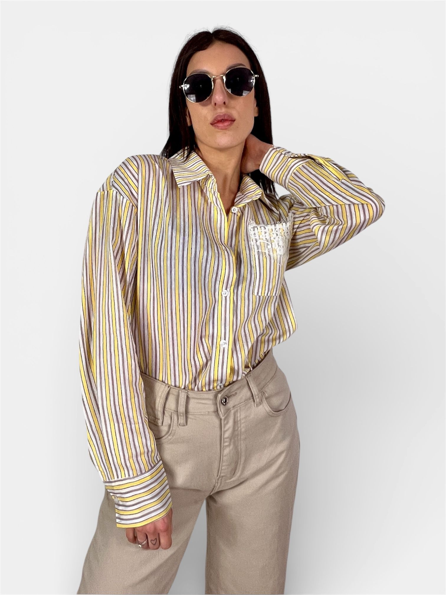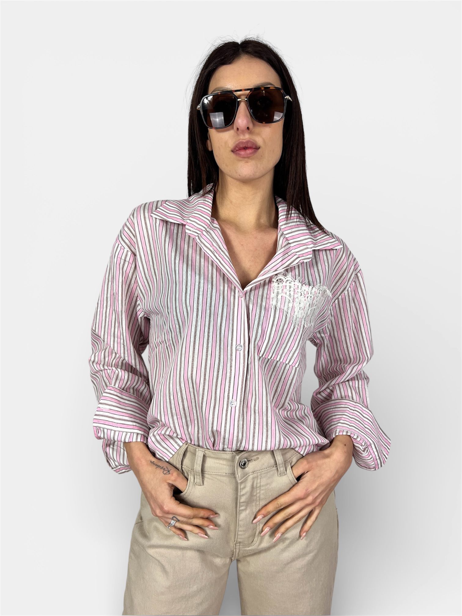 Camicia Oversize Righe Taschino in Pizzo rosa,giallo SUSY MIX