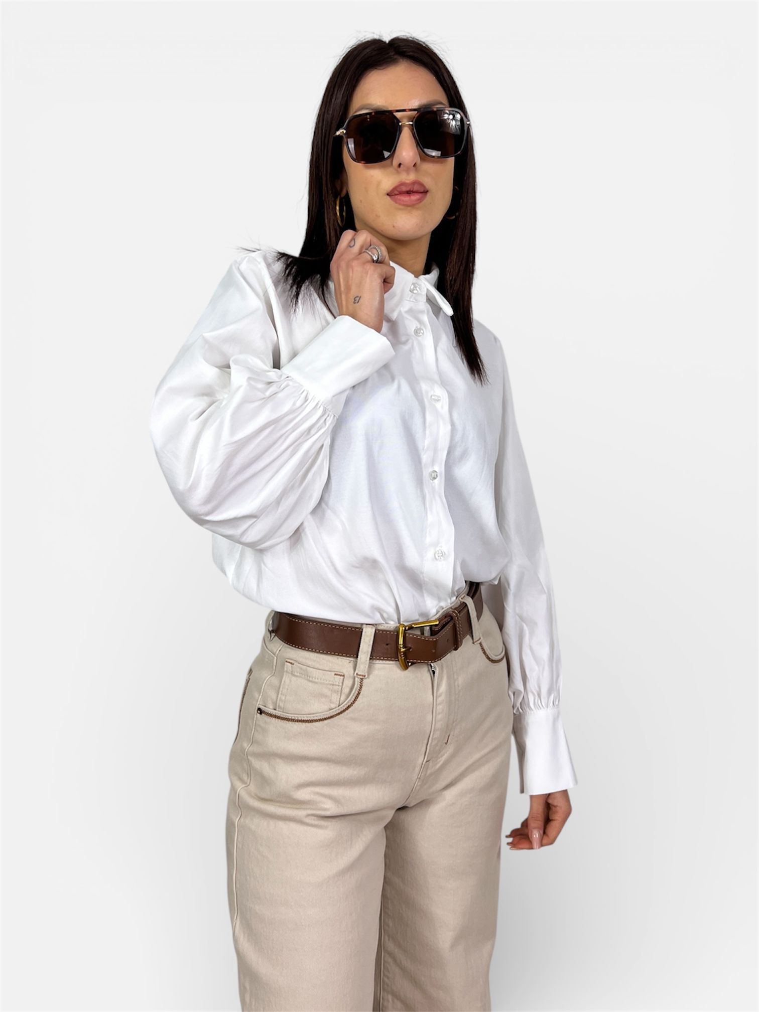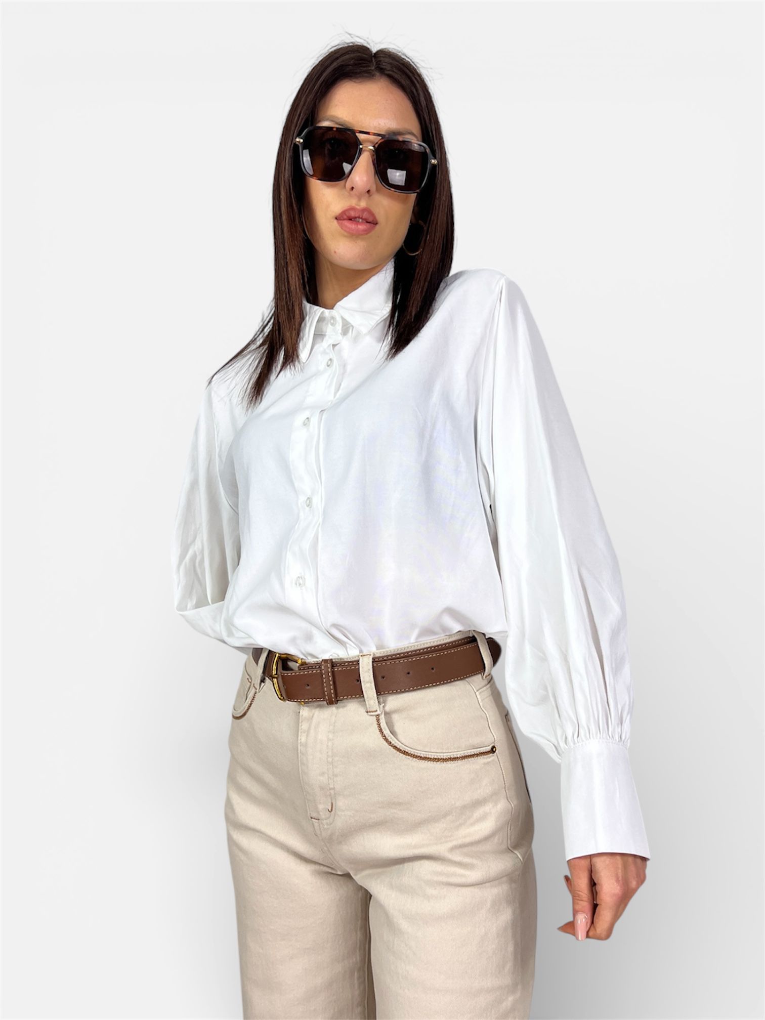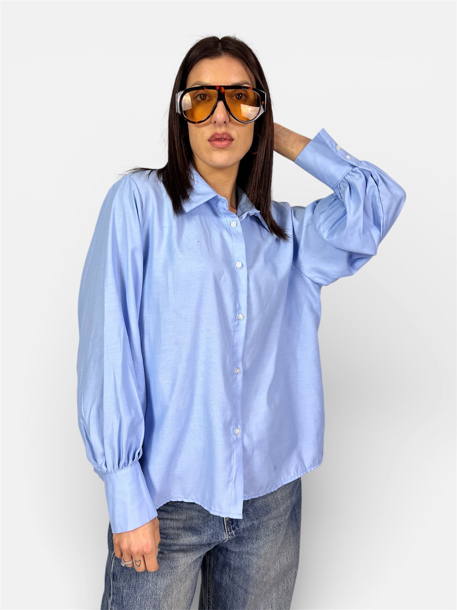 • camicia oxford manica ampia colletto classico,polsino bottoni perla