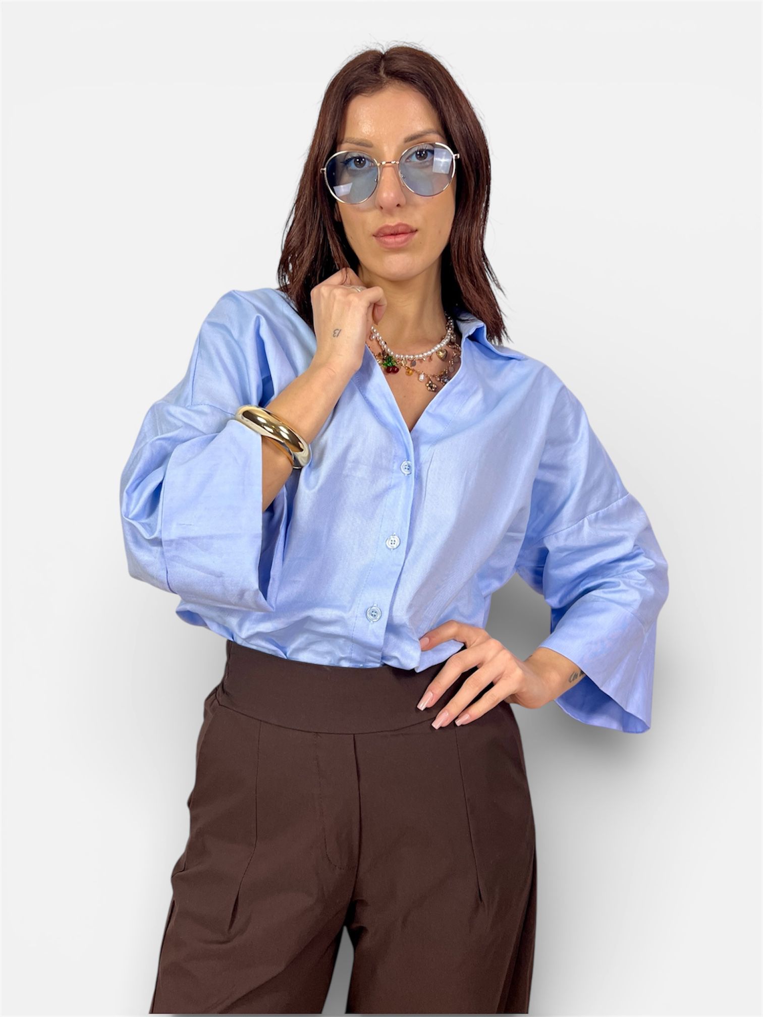 - modello camicia ampia e manica con dettaglio risvolto,bottoni di chiusura