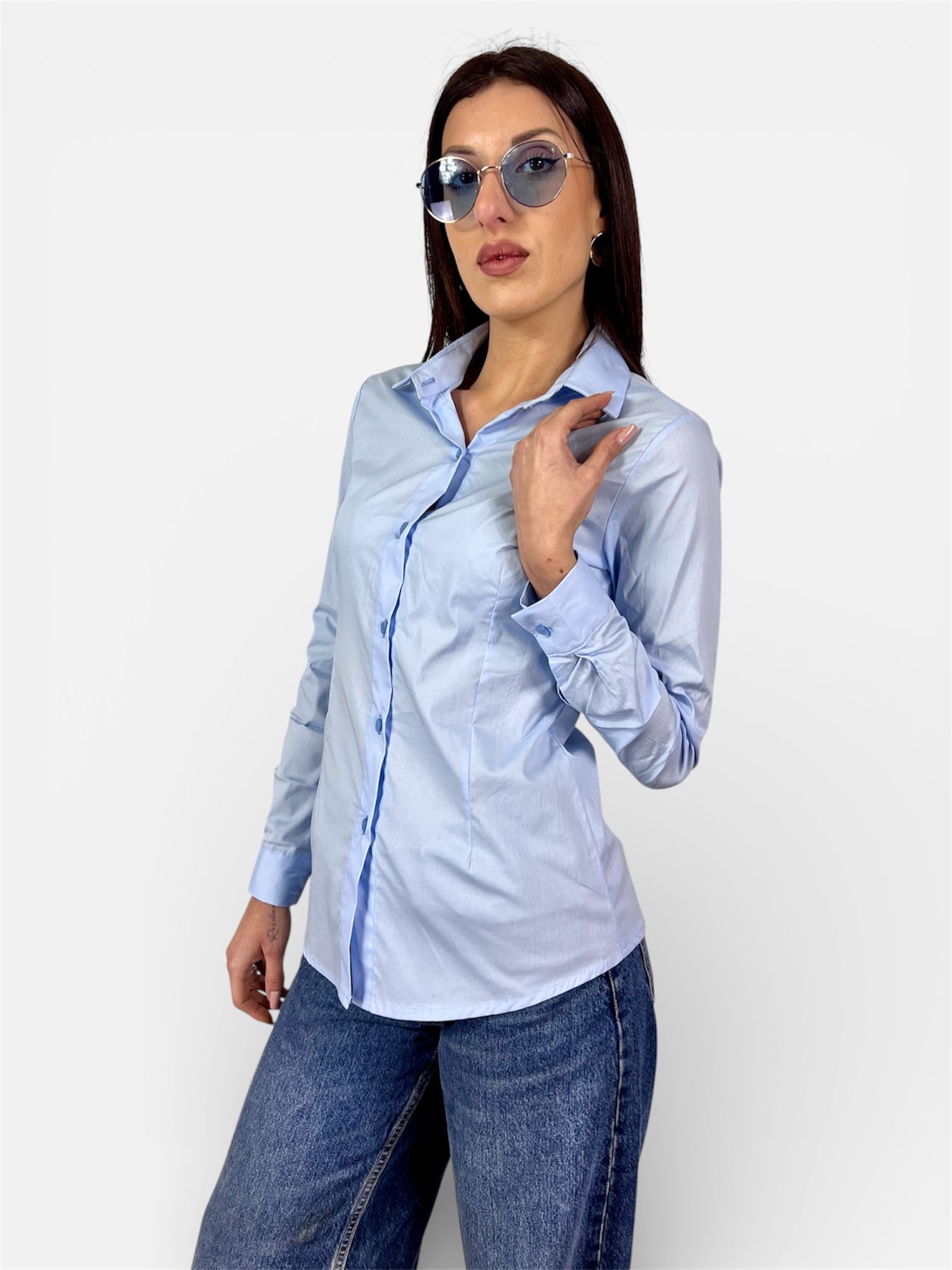 camicia slim cotone celeste,bianco by MYRA