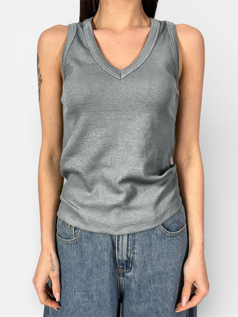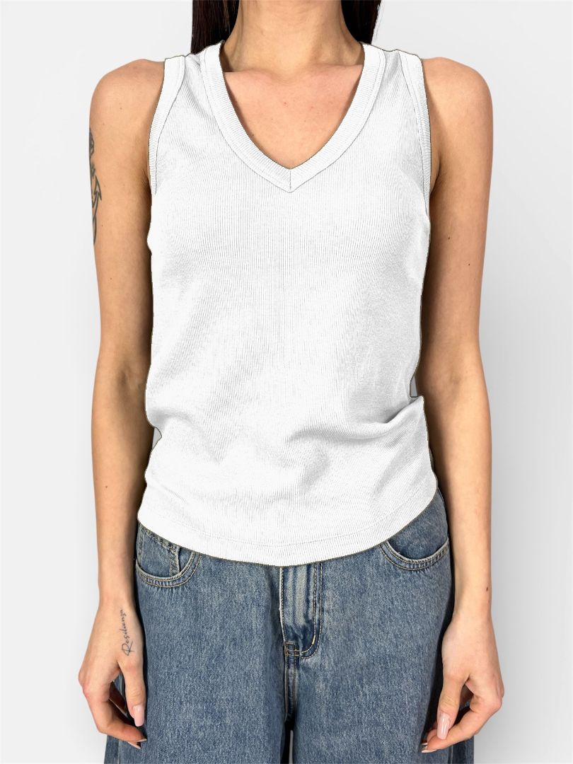 Un capo fondamentale per ogni guardaroba, che unisce comfort assoluto e versatilità. Questa canotta è la base perfetta per infiniti look, da sola nelle giornate calde o come sottogiacca.