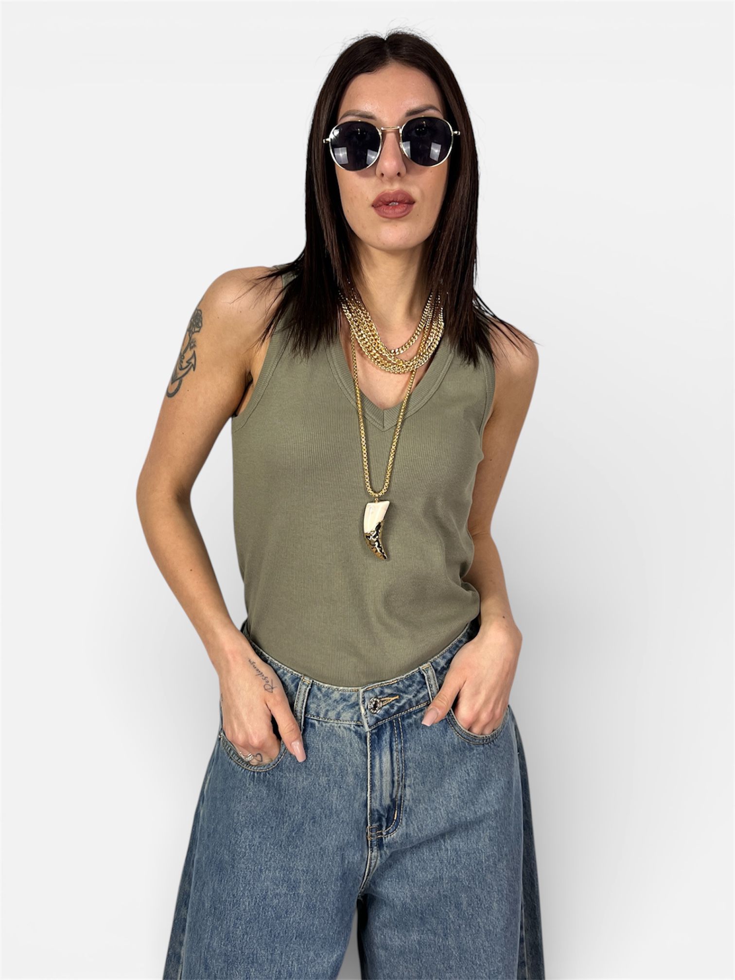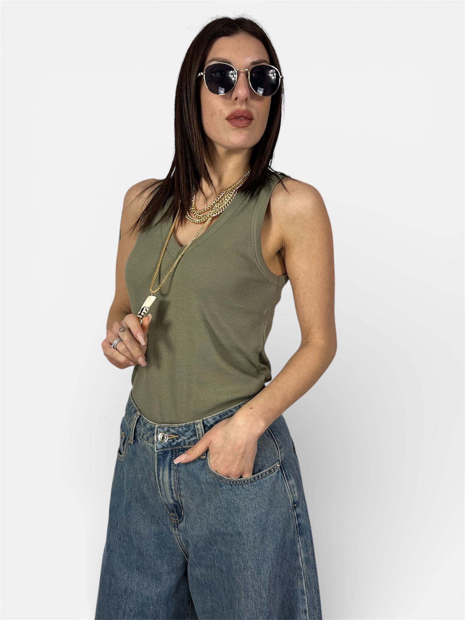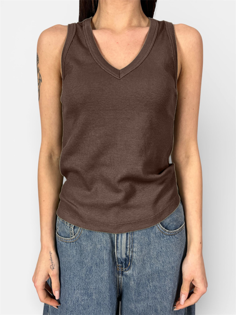Canotta Costine Scollo V marrone,nero,grigio,militare,bianco KONTATTO