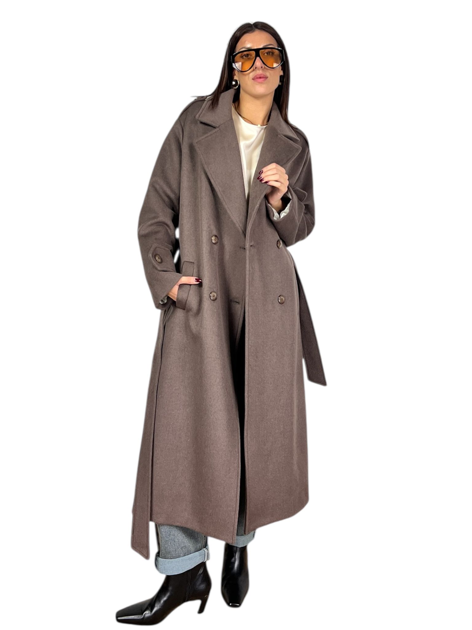 cappotto over lungo doppio petto cinta militare,moro MYRA