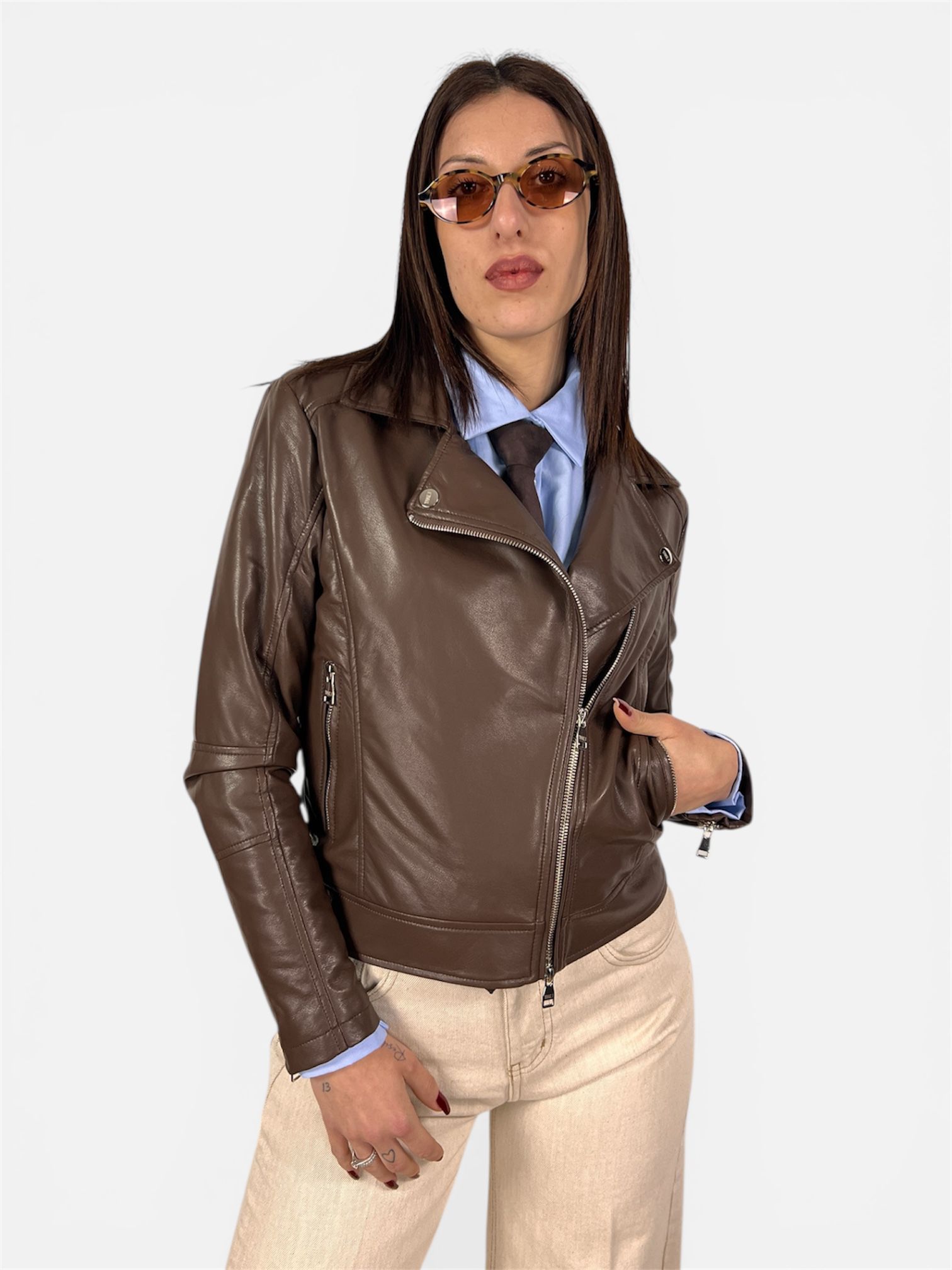 Il classico intramontabile si rinnova in questa versione contemporanea e sofisticata. Questo giubbino modello chiodo è il capo “mai più senza” per completare i tuoi outfit con un tocco di grinta e uno stile urban-chic impeccabile.