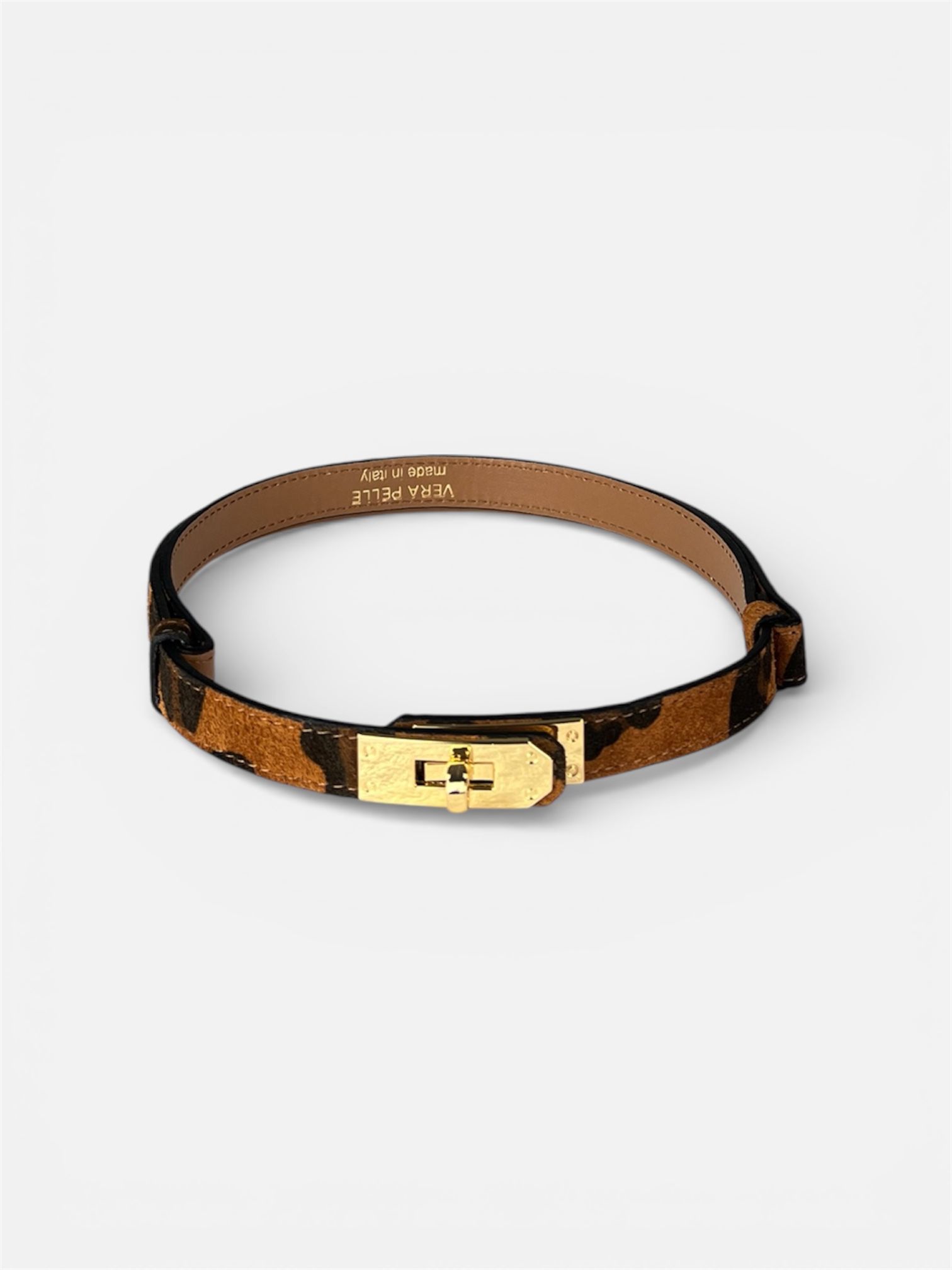 cinta vera pelle regolabile lucchetto animalier nero,rosso,marrone,cuoio MYRA