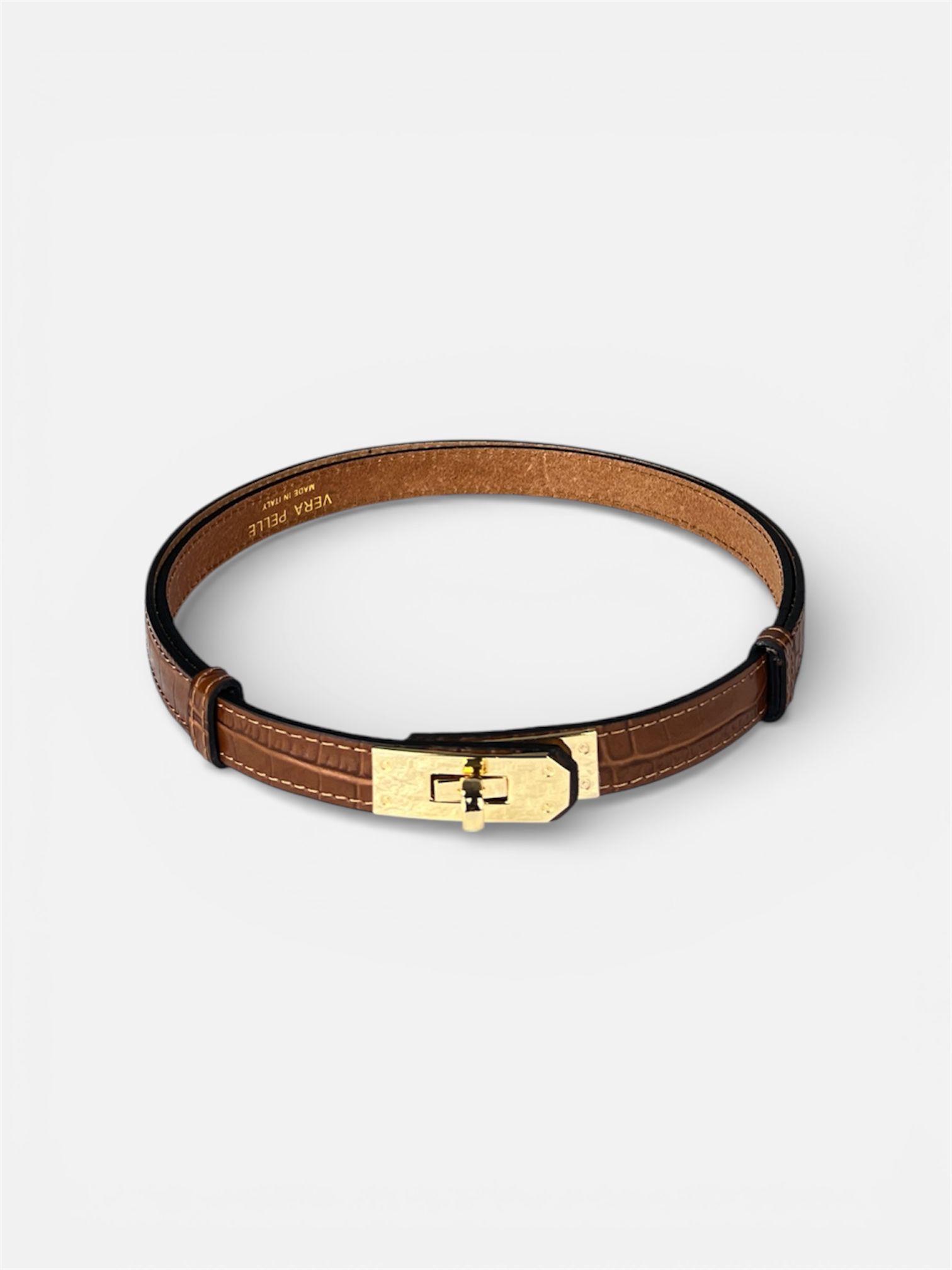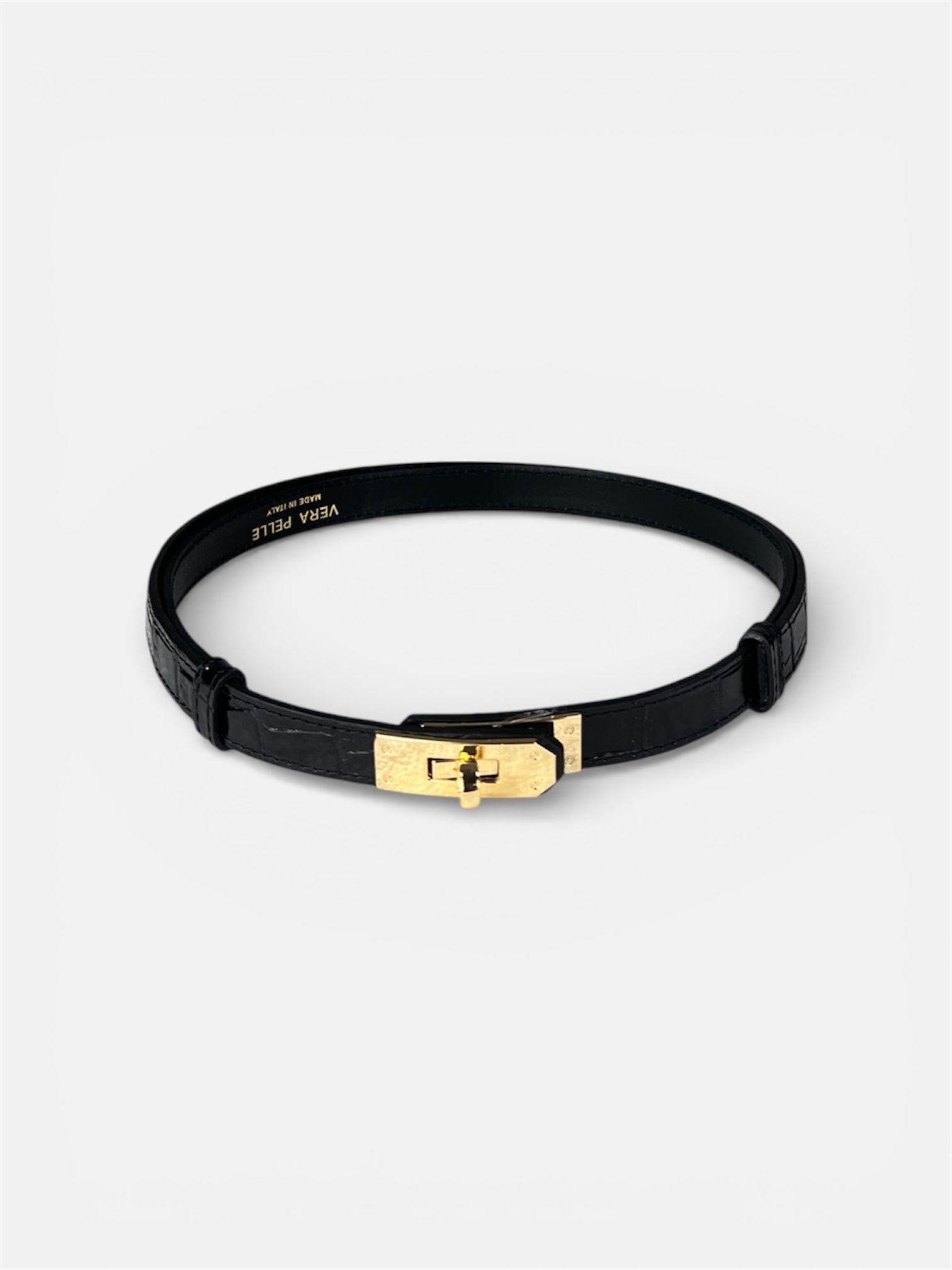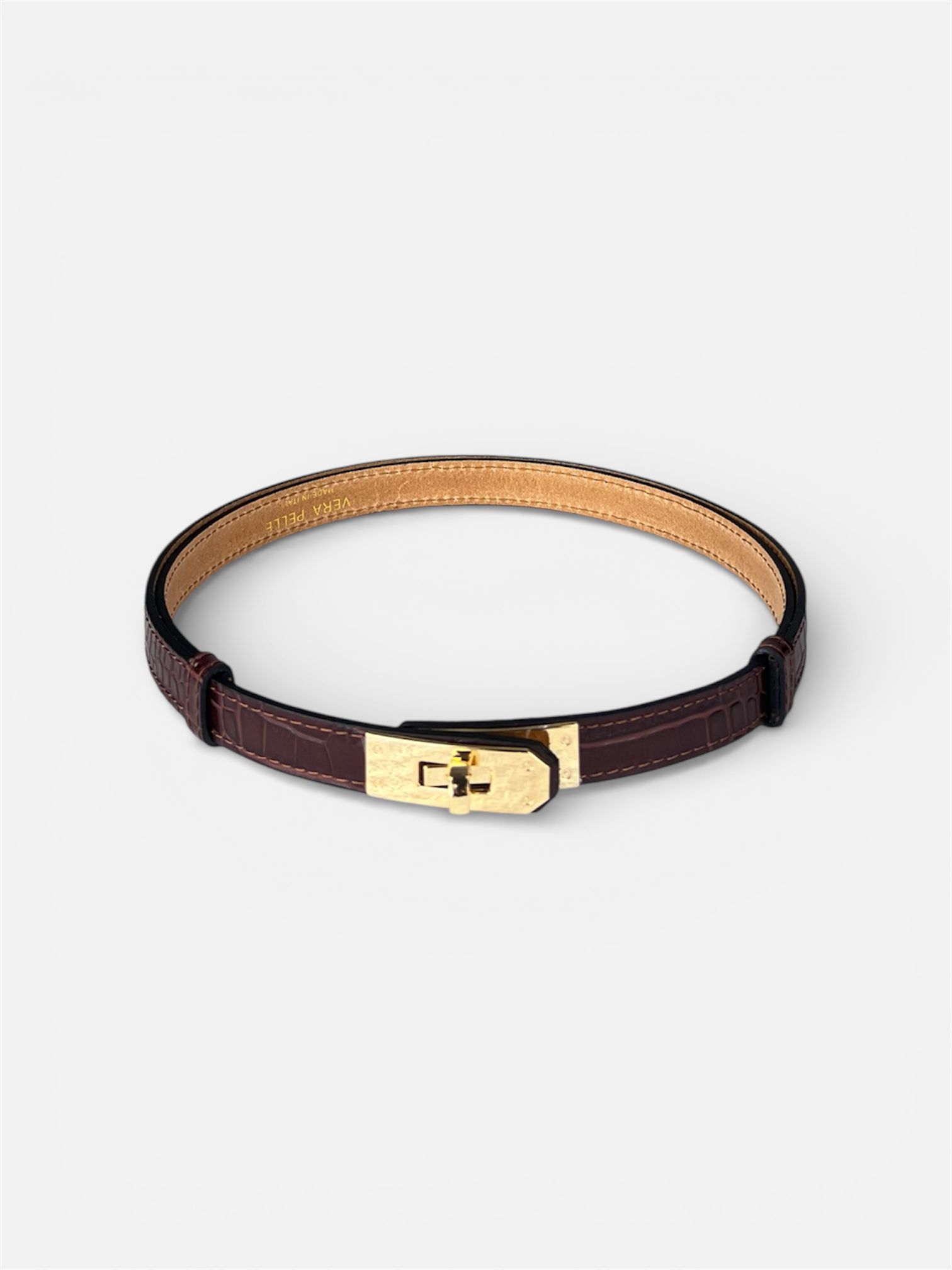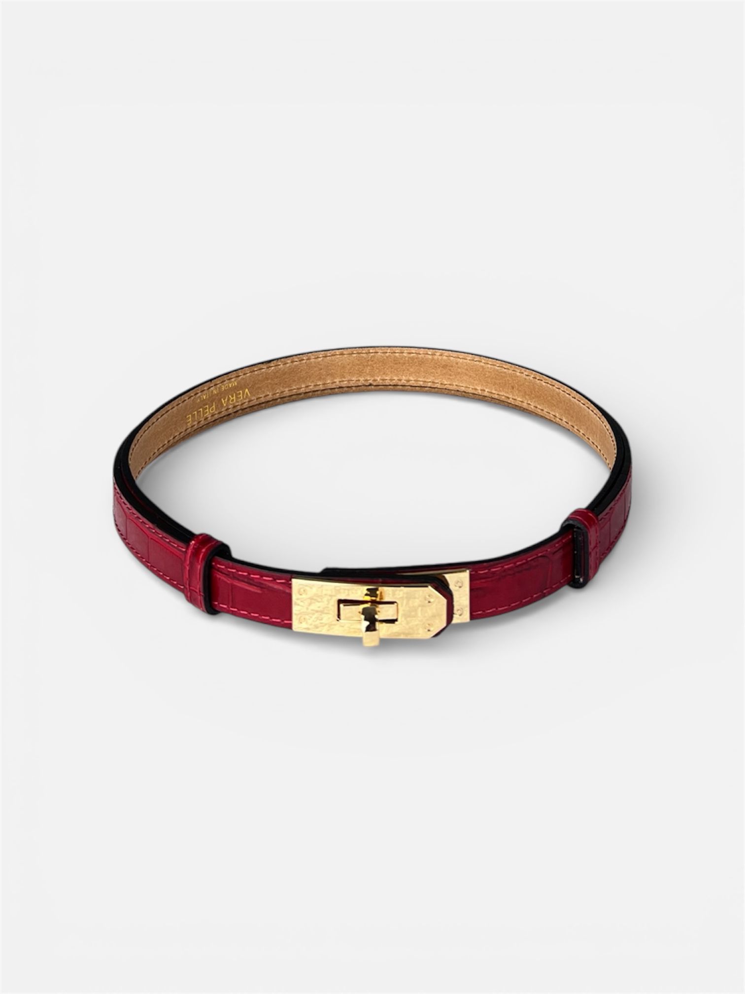 - modello cinta fina in vera pelle con chiusura a lucchetto