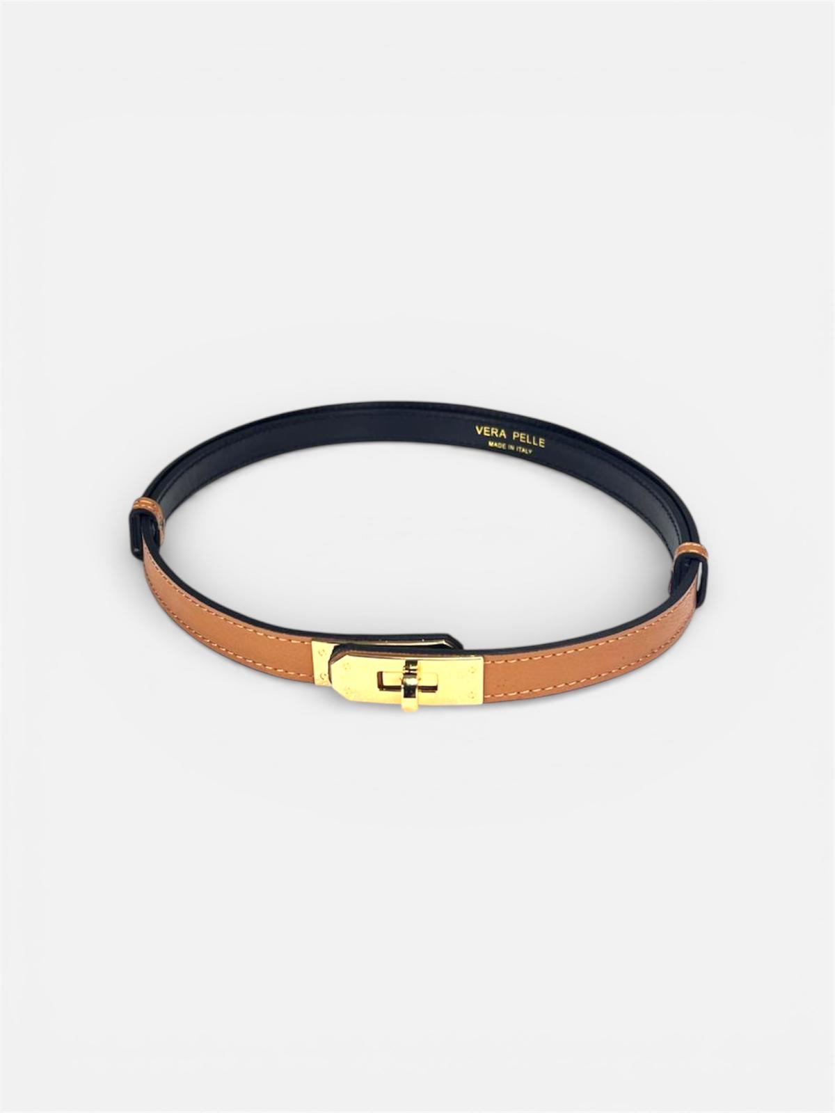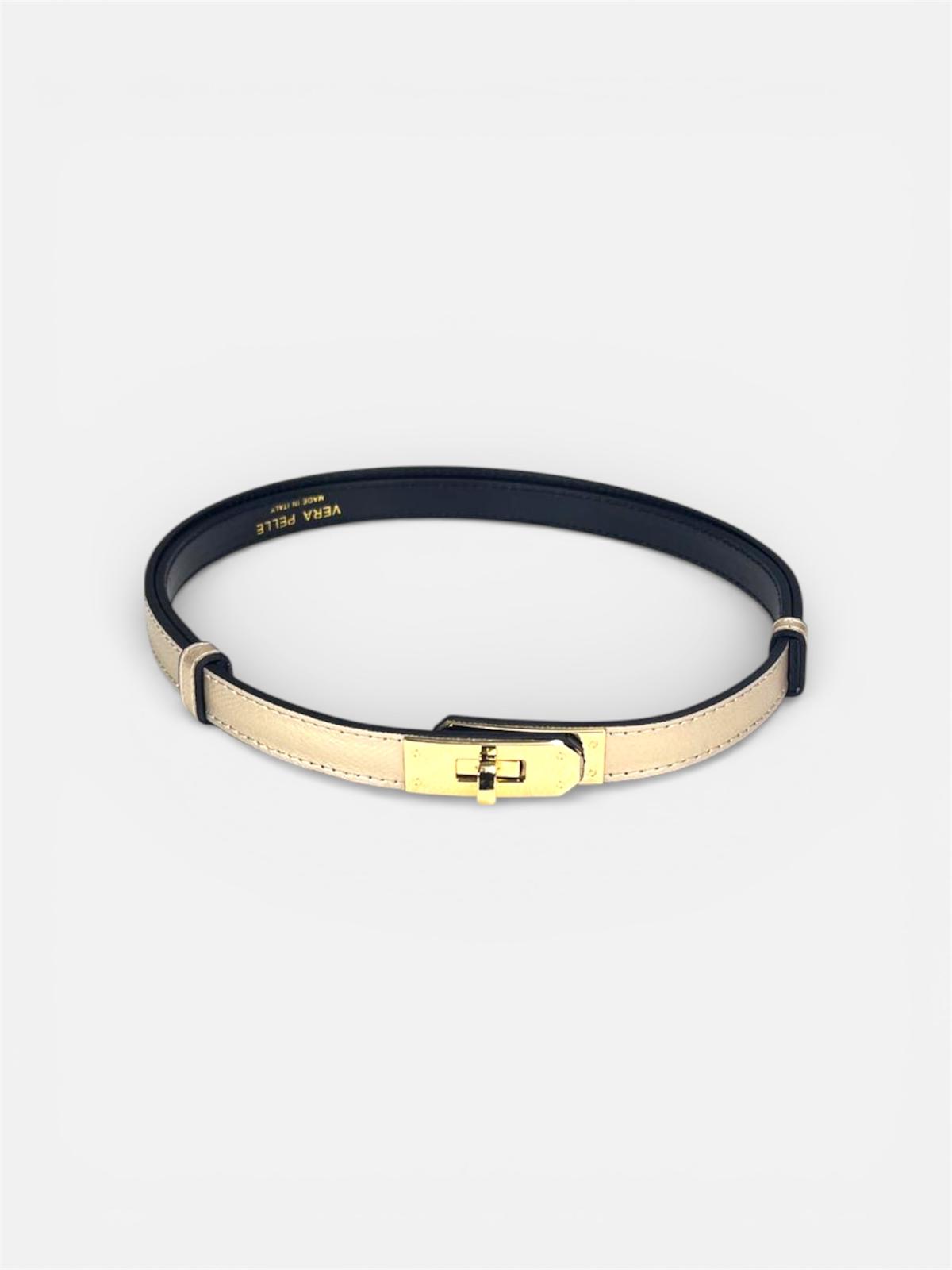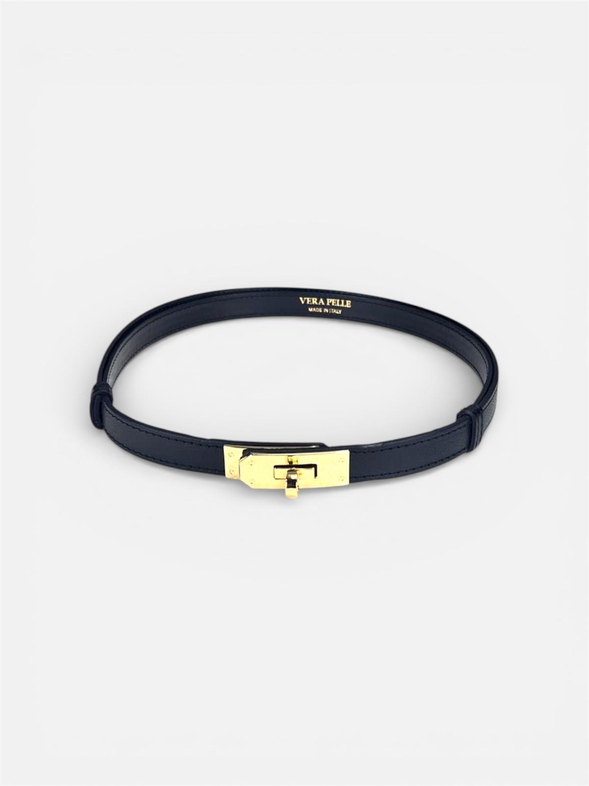 - modello cinta fina in vera pelle con chiusura a lucchetto