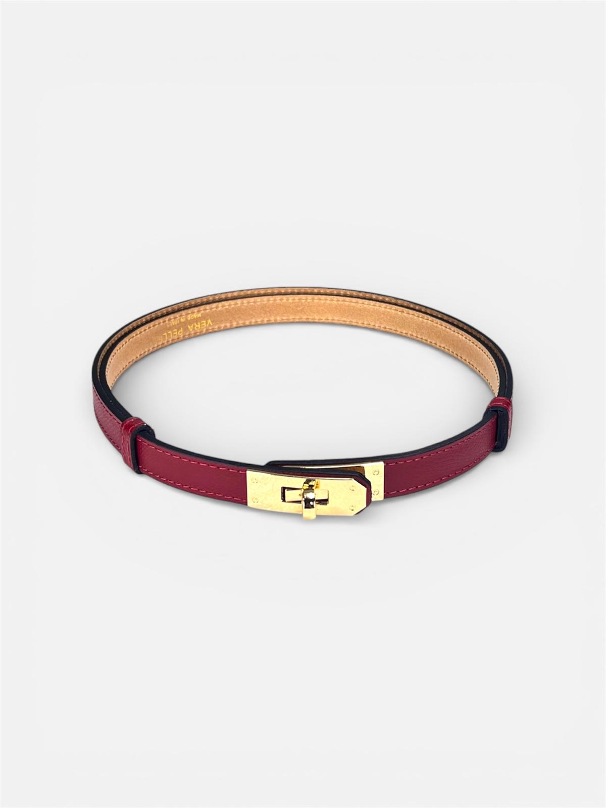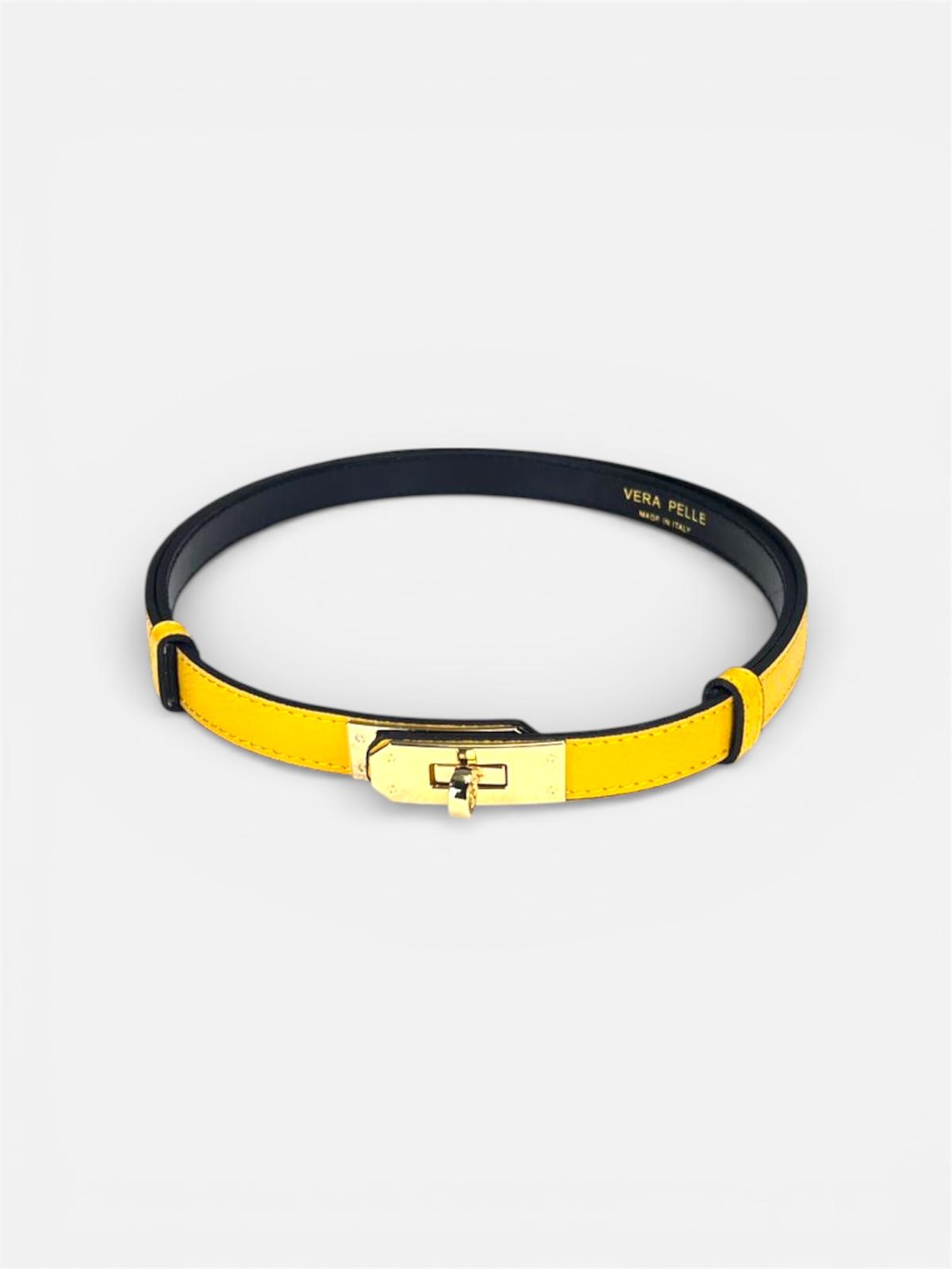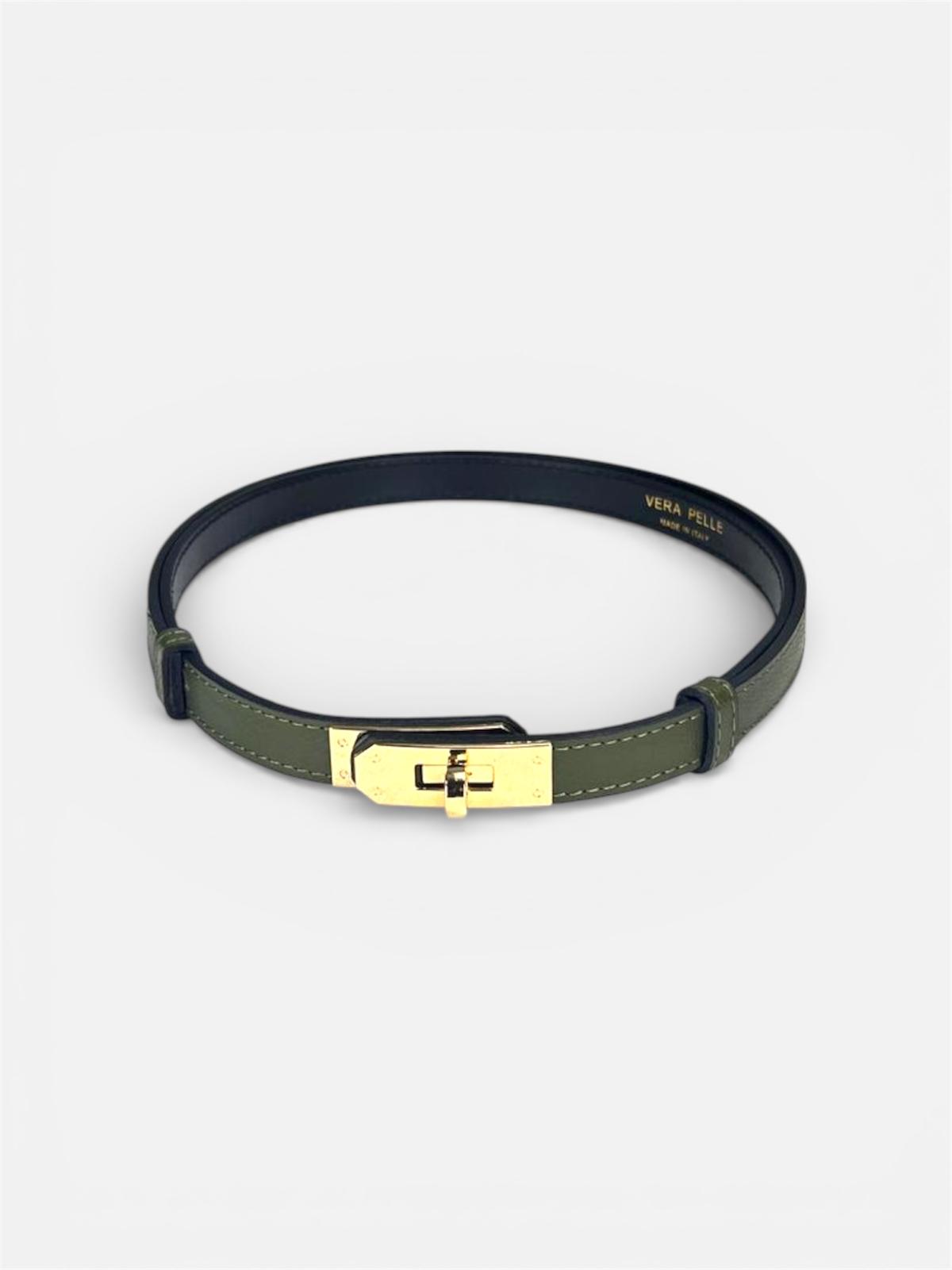- modello cinta fina in vera pelle con chiusura a lucchetto