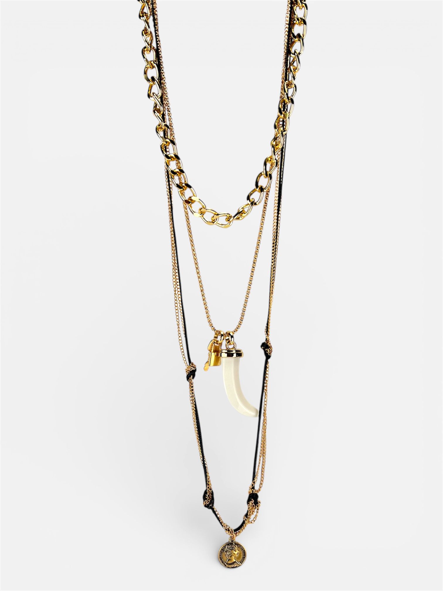 Collana Multi-Strato Pendente Corno Moneta oro,argento by MYRA