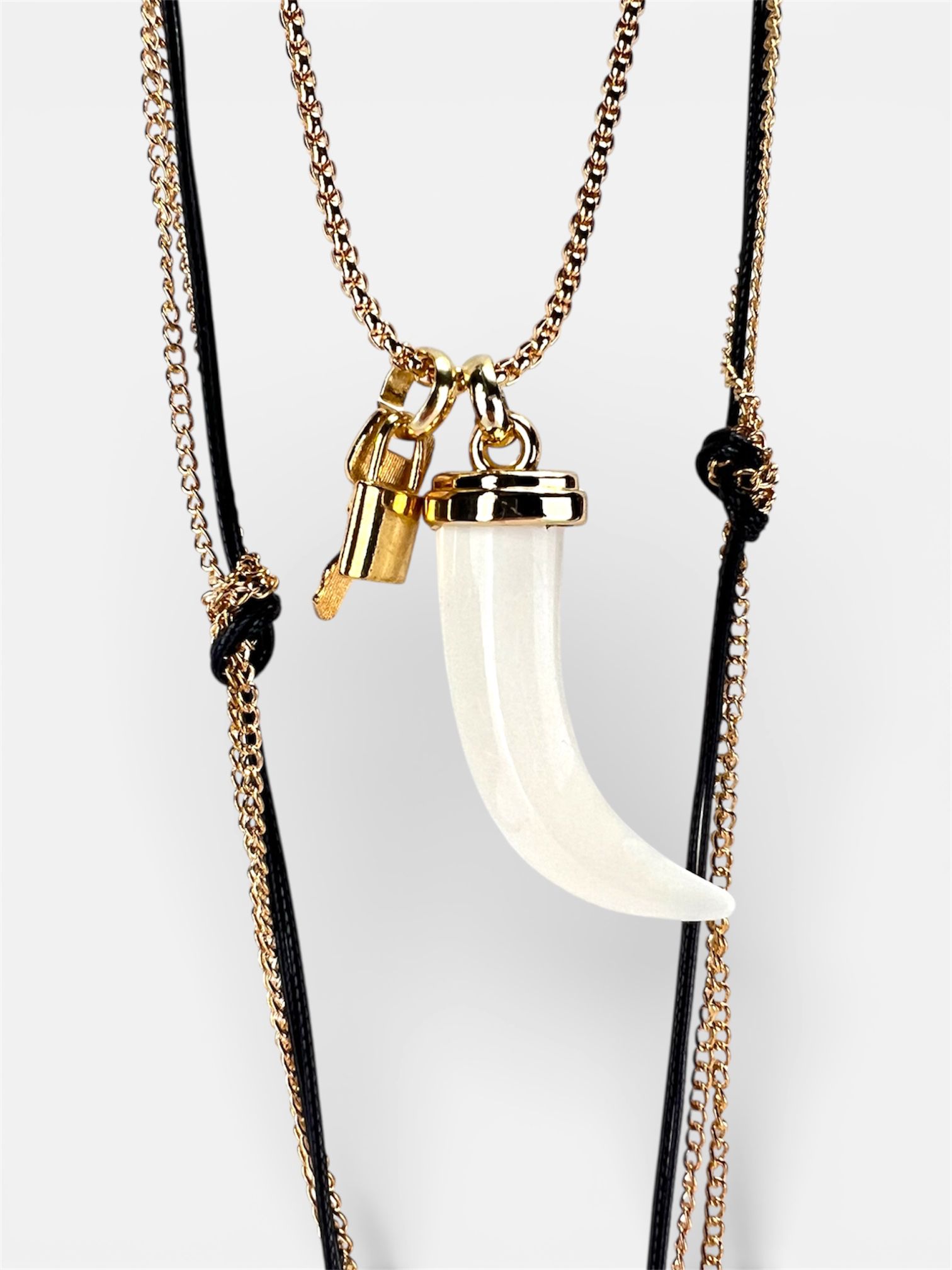 • Dettagli Curati: Il pendente a forma di corno è realizzato in materiale sintetico di alta qualità, leggero e resistente, con una finitura liscia che ne esalta la forma.