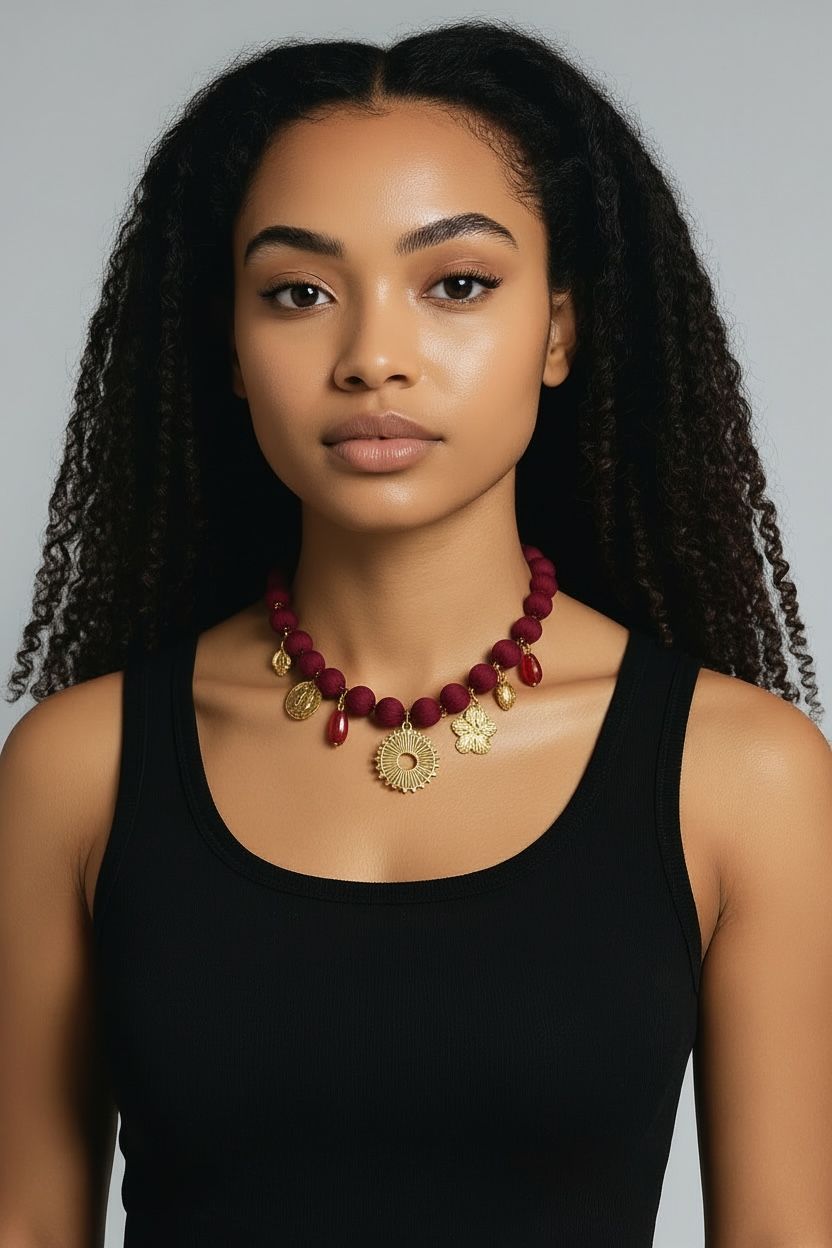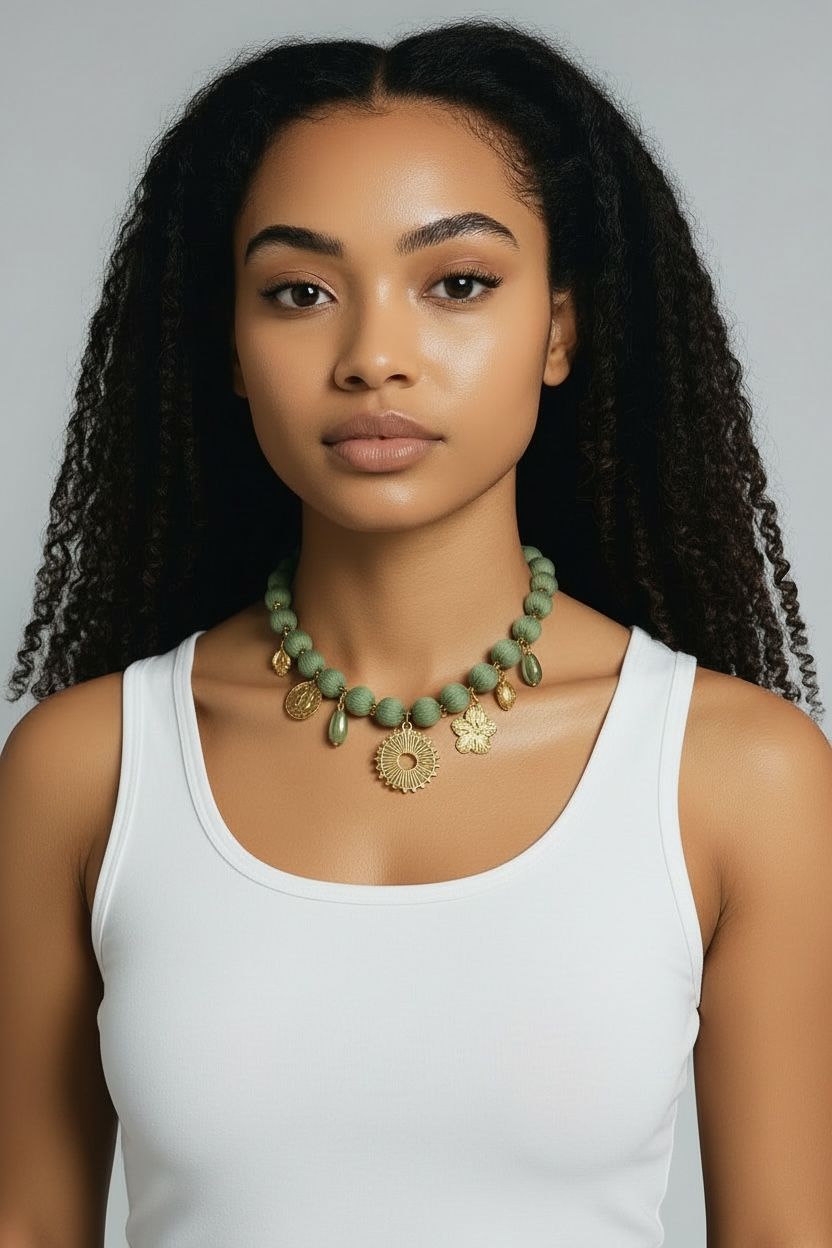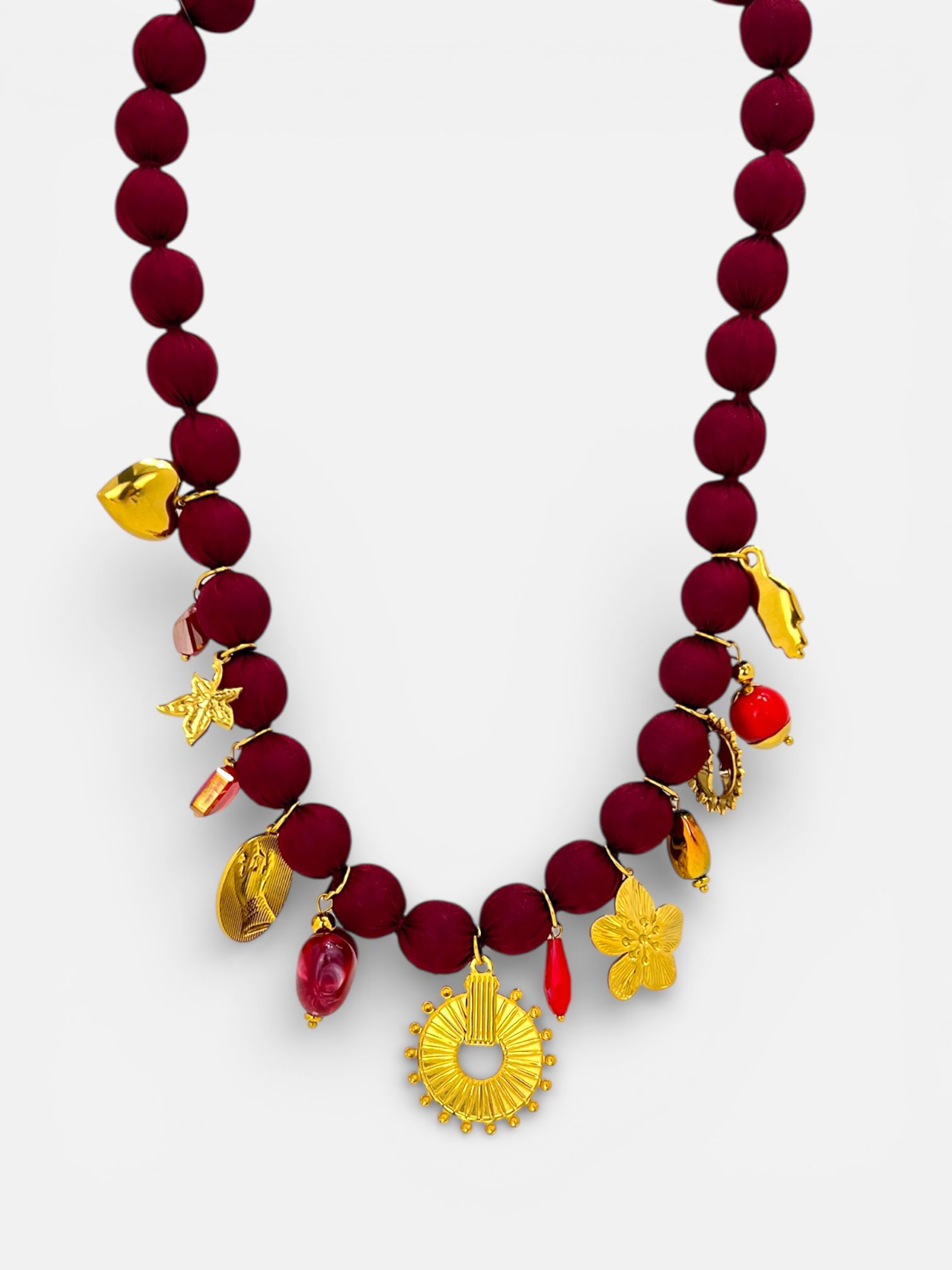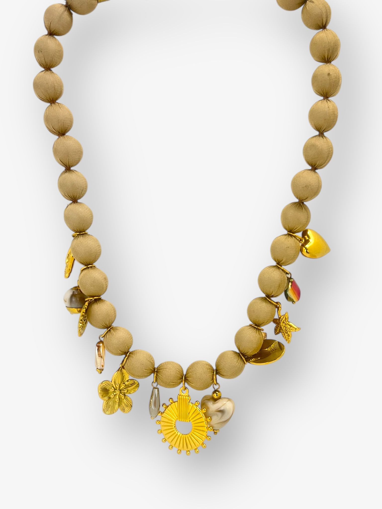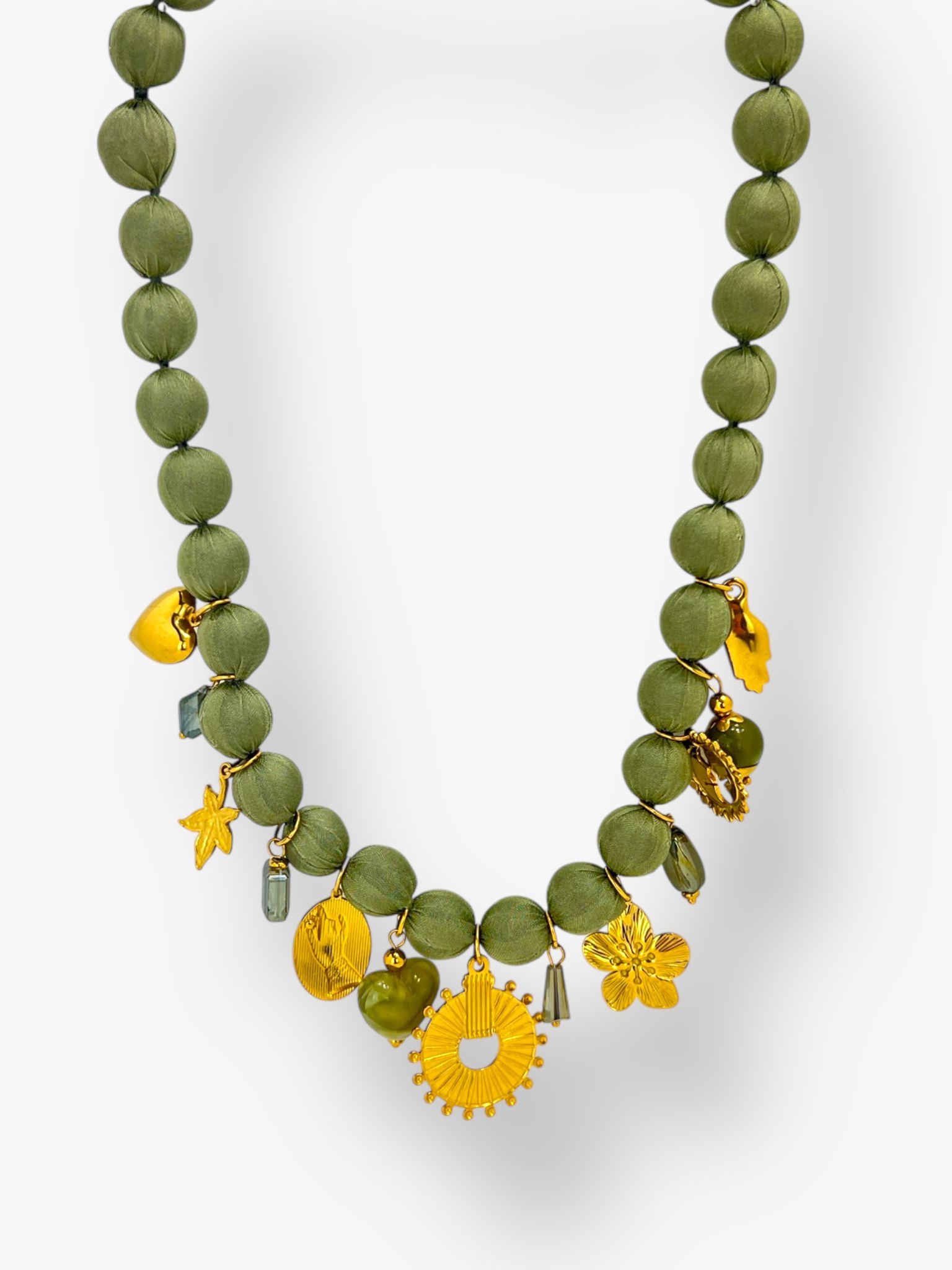 Collana sfere ciondoli nero,salvia,beige,vino by MYRA