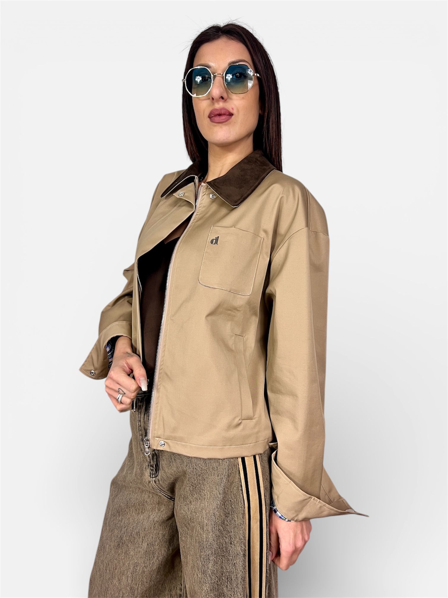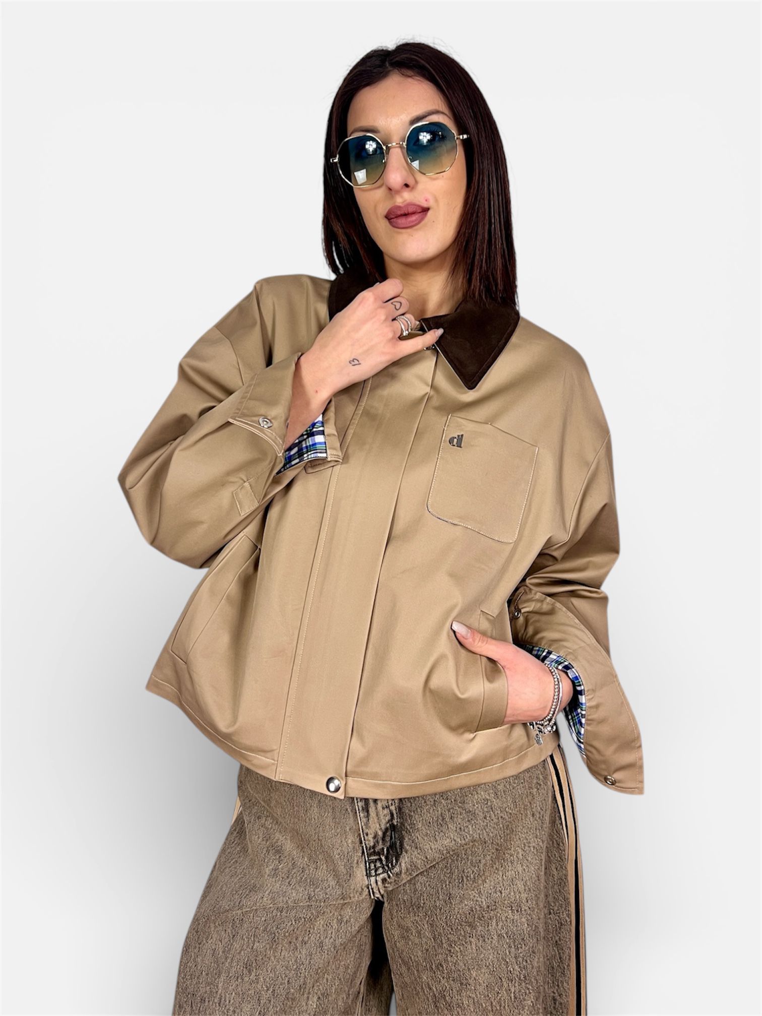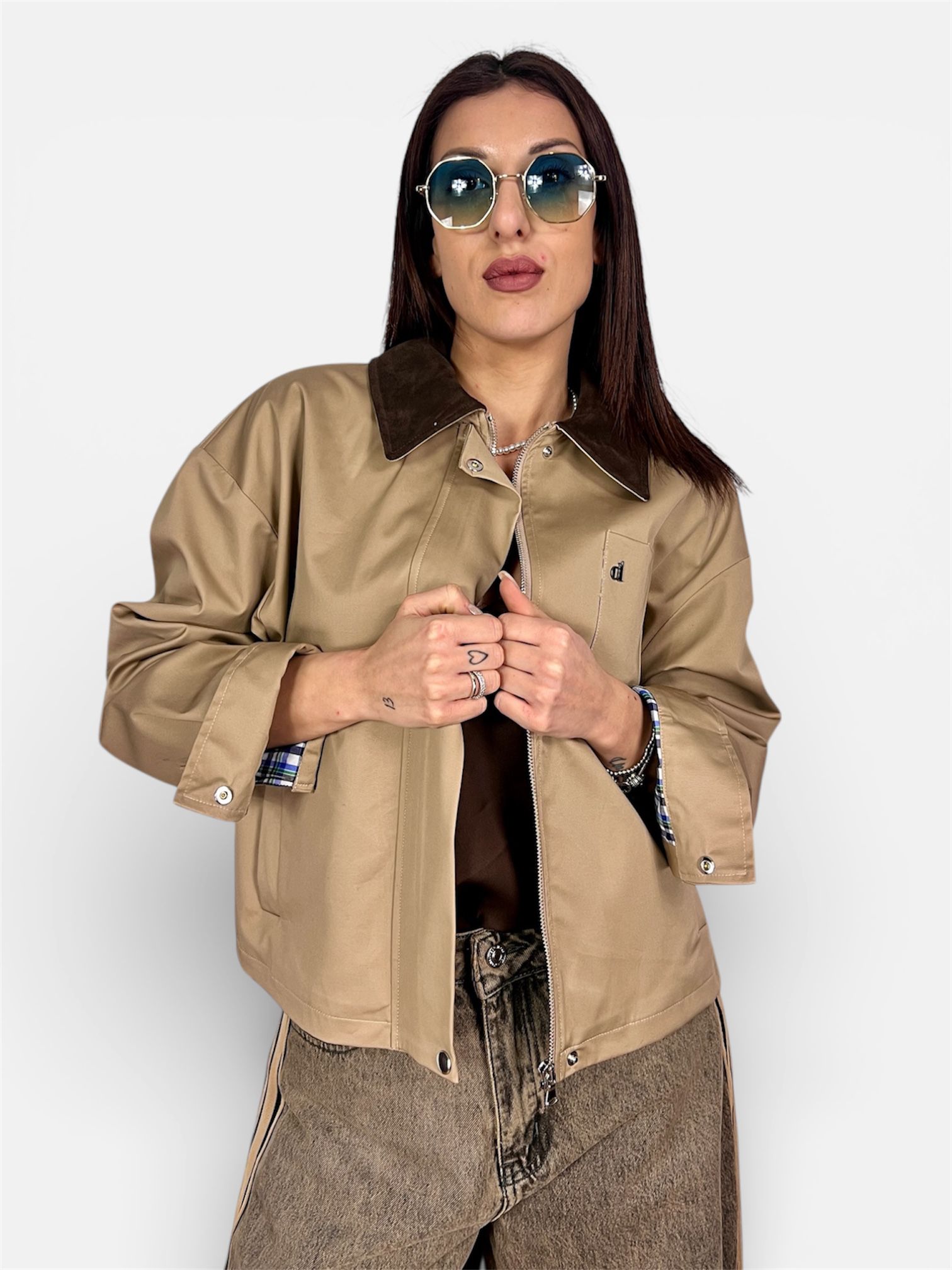 - modello giacca a vento,colletto a contrasto e interno in fantasia cerniera e bottoni