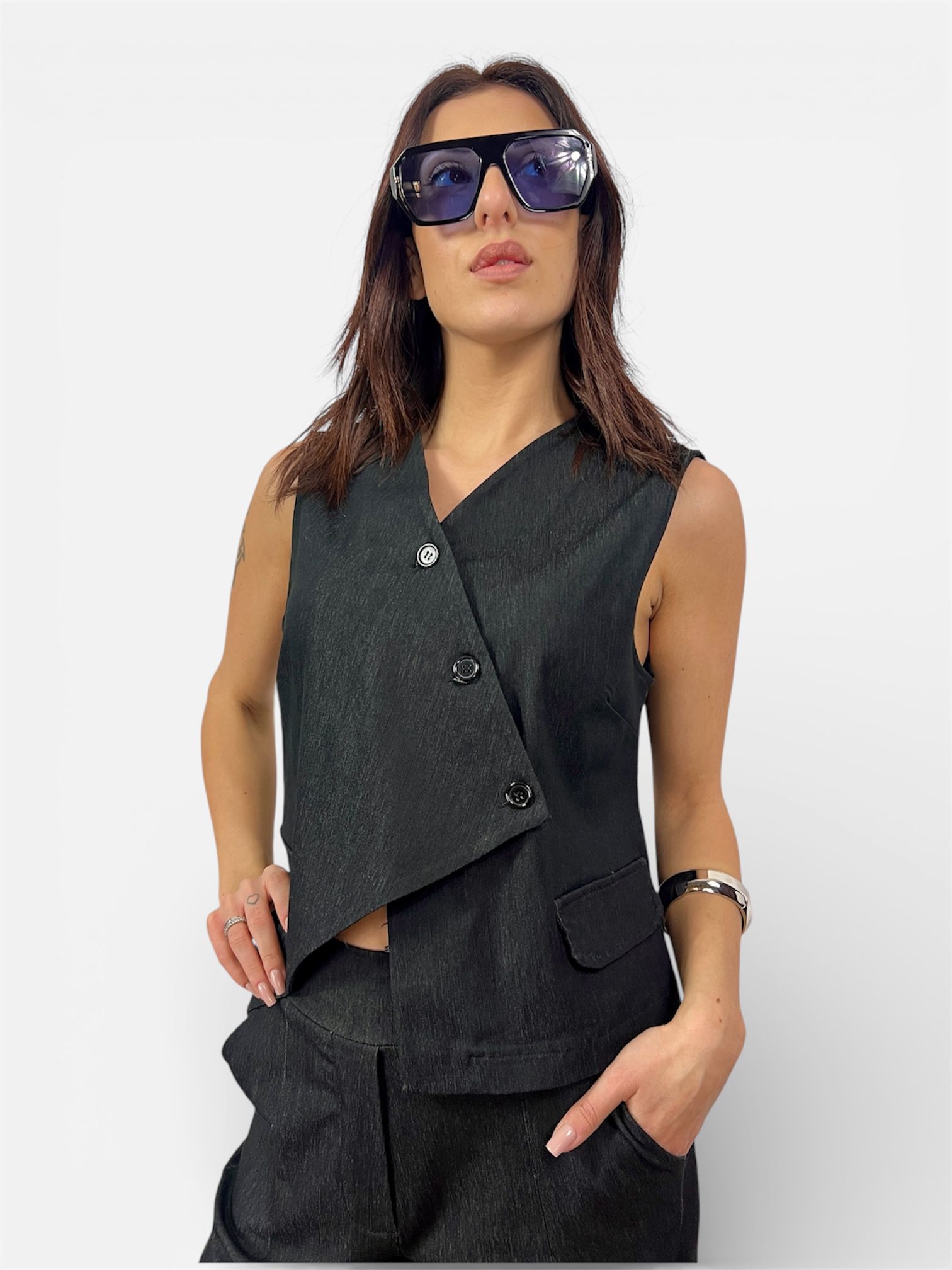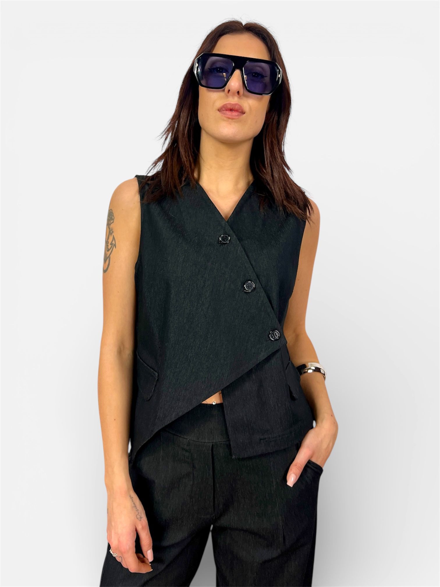 - questo gilet in bengalina è costruito per rendere il tuo outfit ricercato abbinabile ha due modelli di pantalone