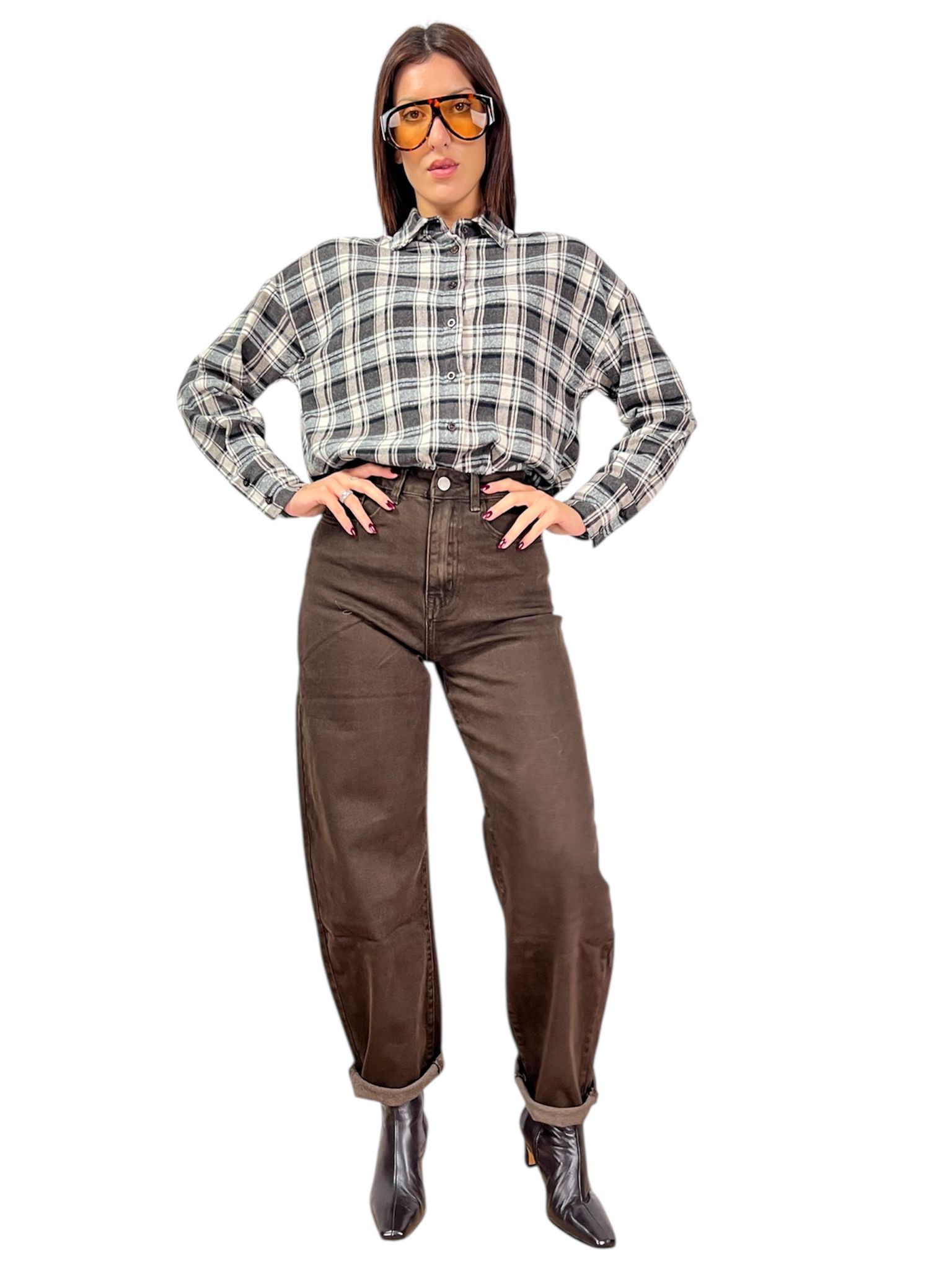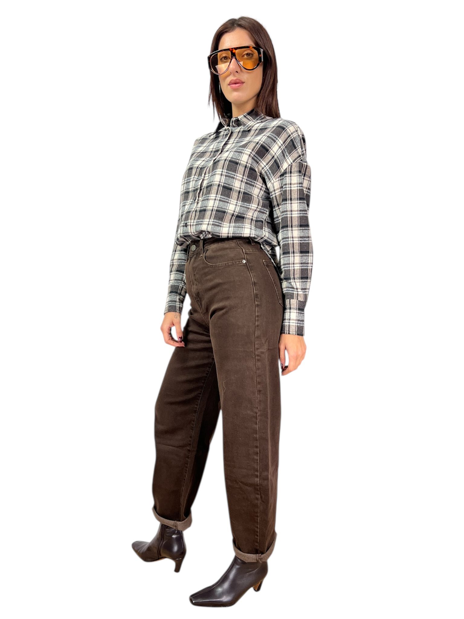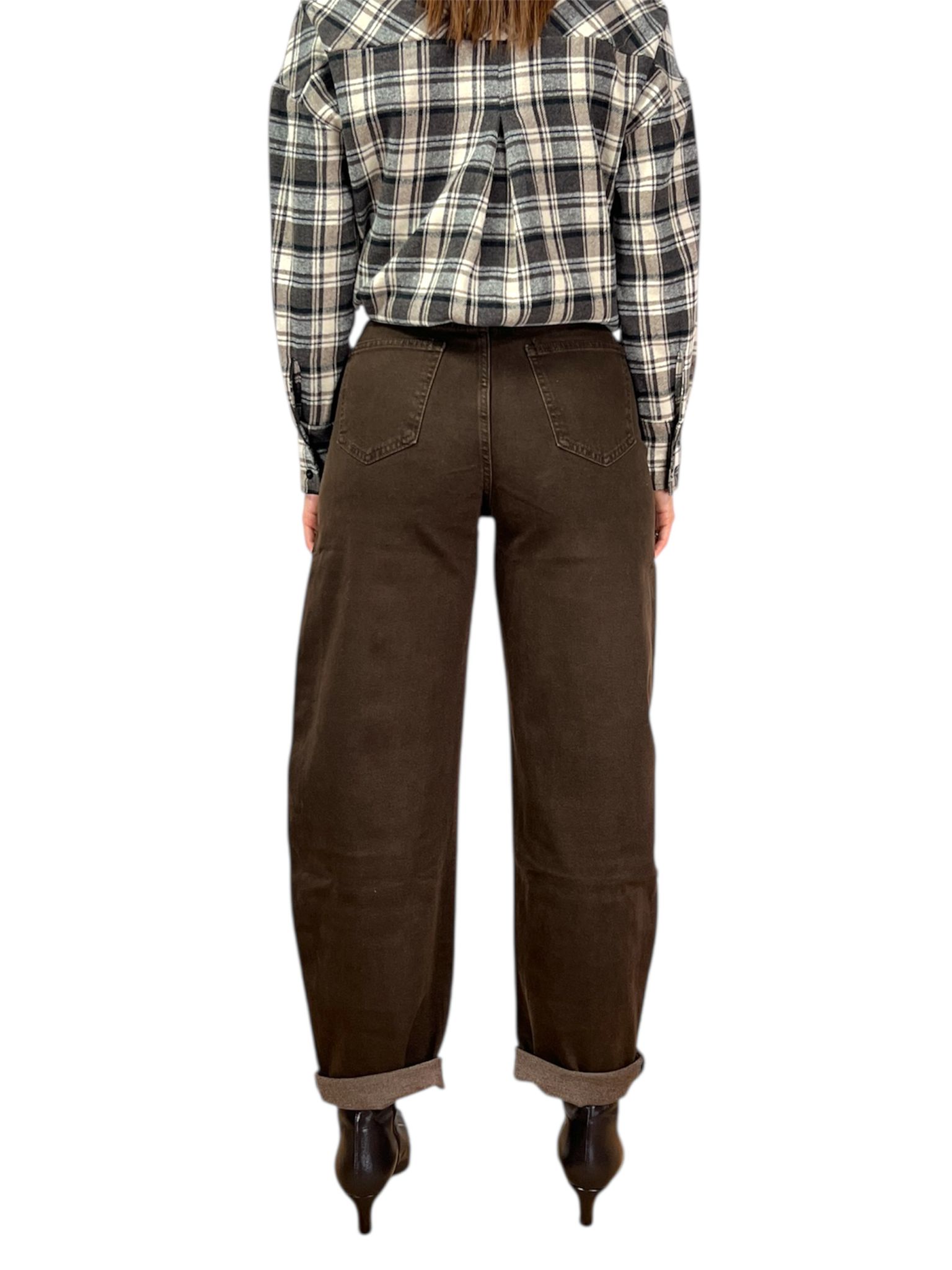 - modello jeans cinque tasche balloon lavaggio marrone elasticizzato