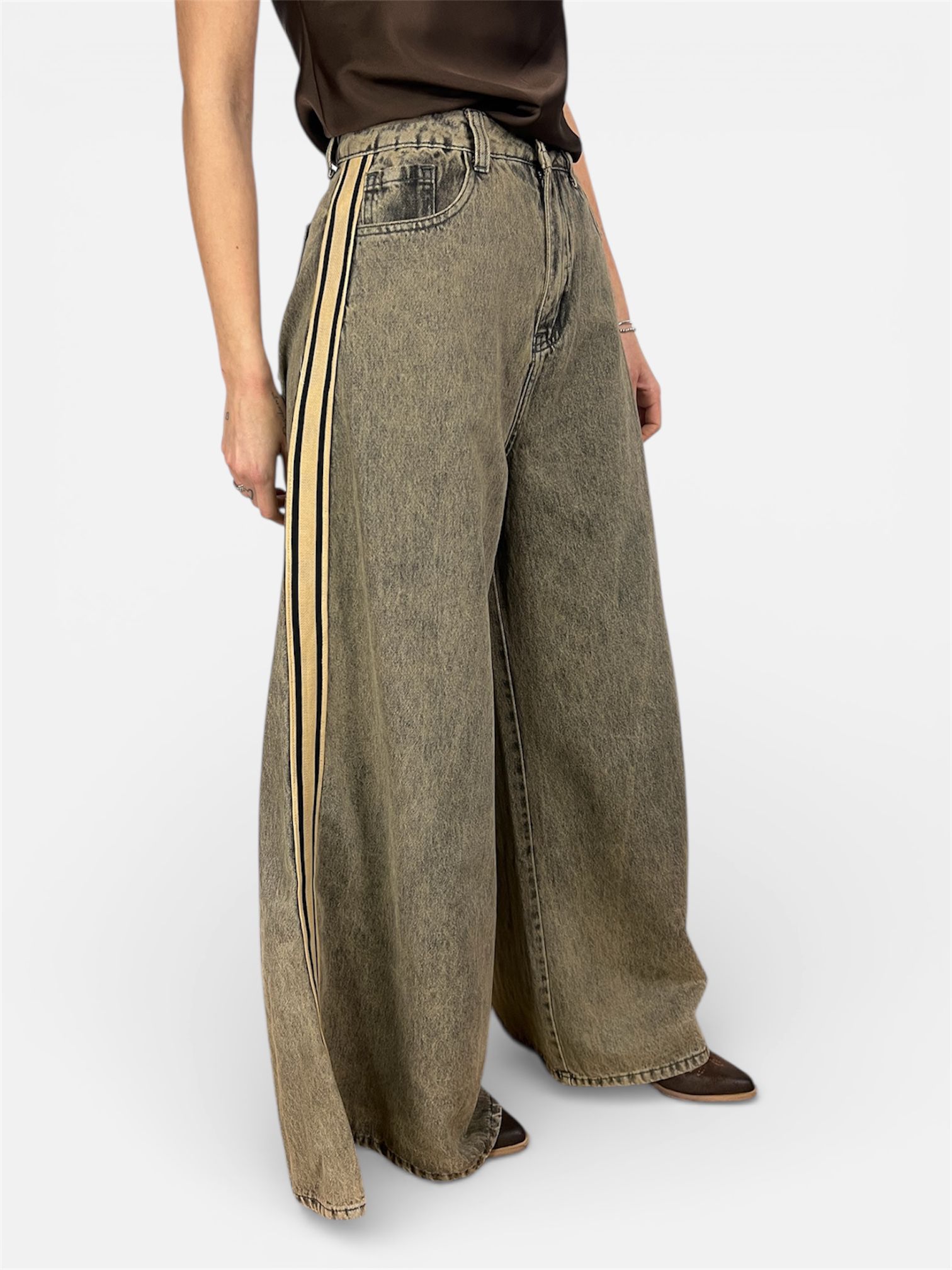 jeans palazzo ampio con banda laterale,MYRA