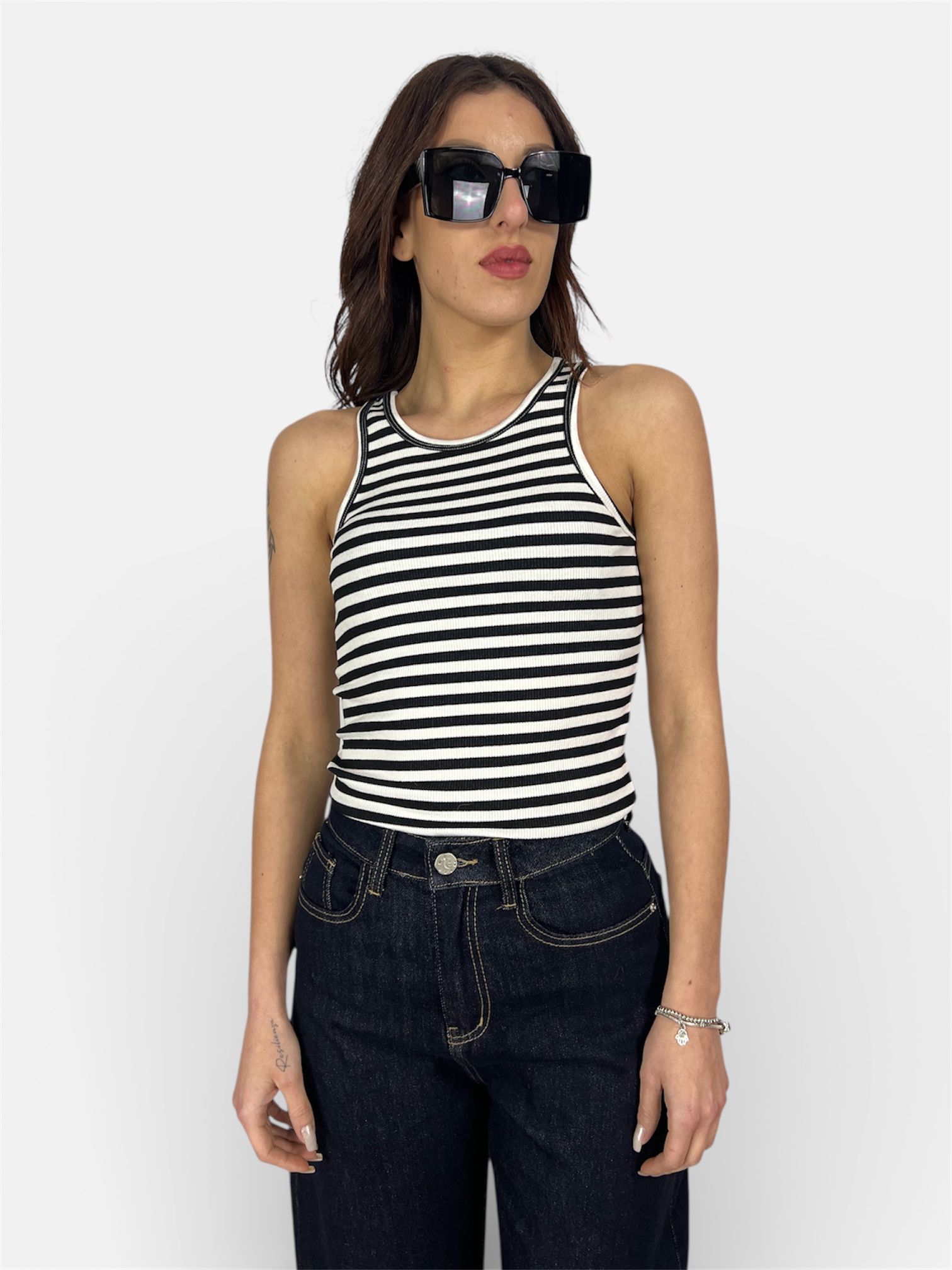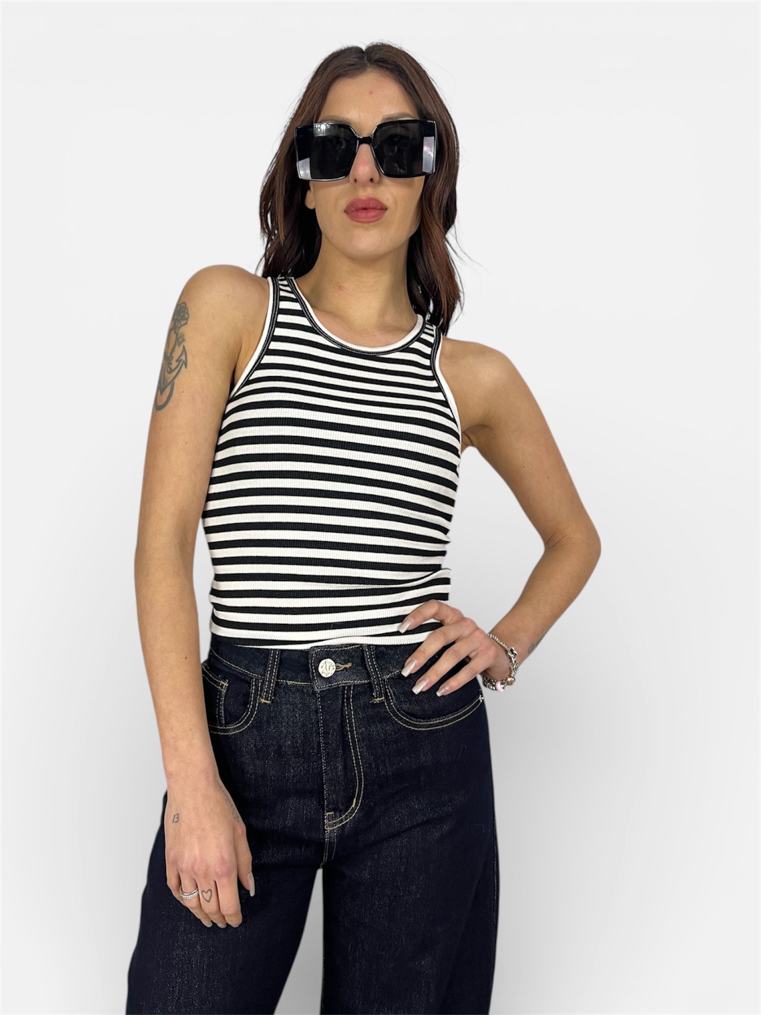 maglia smanicata righe black/white,SUSY MIX