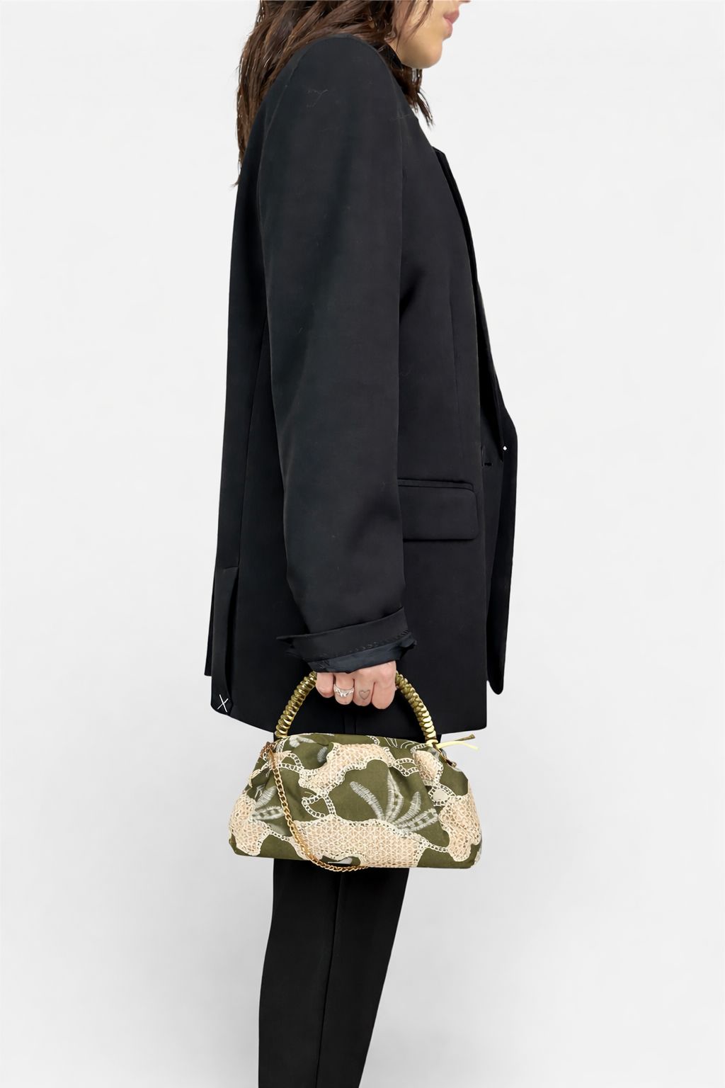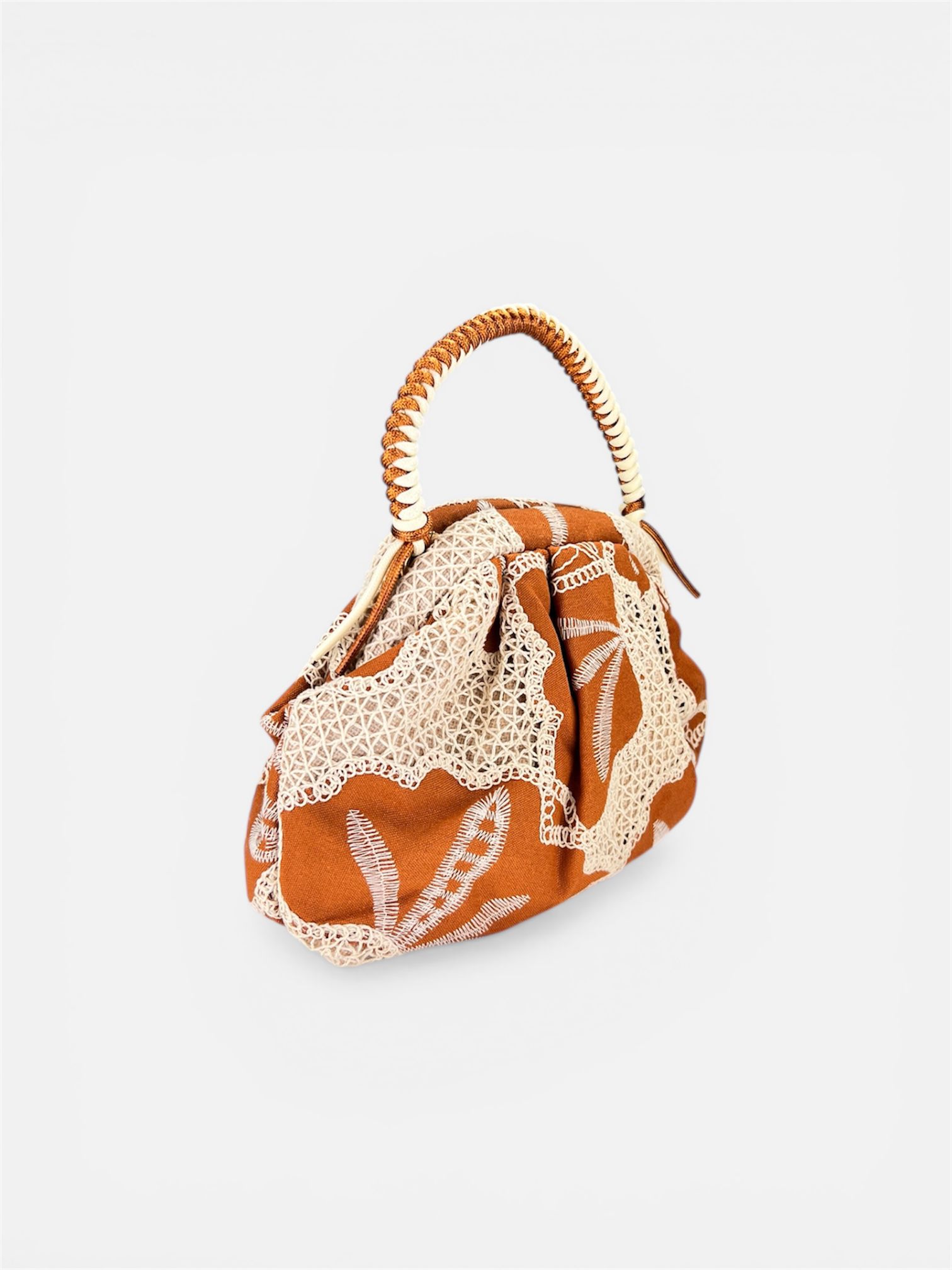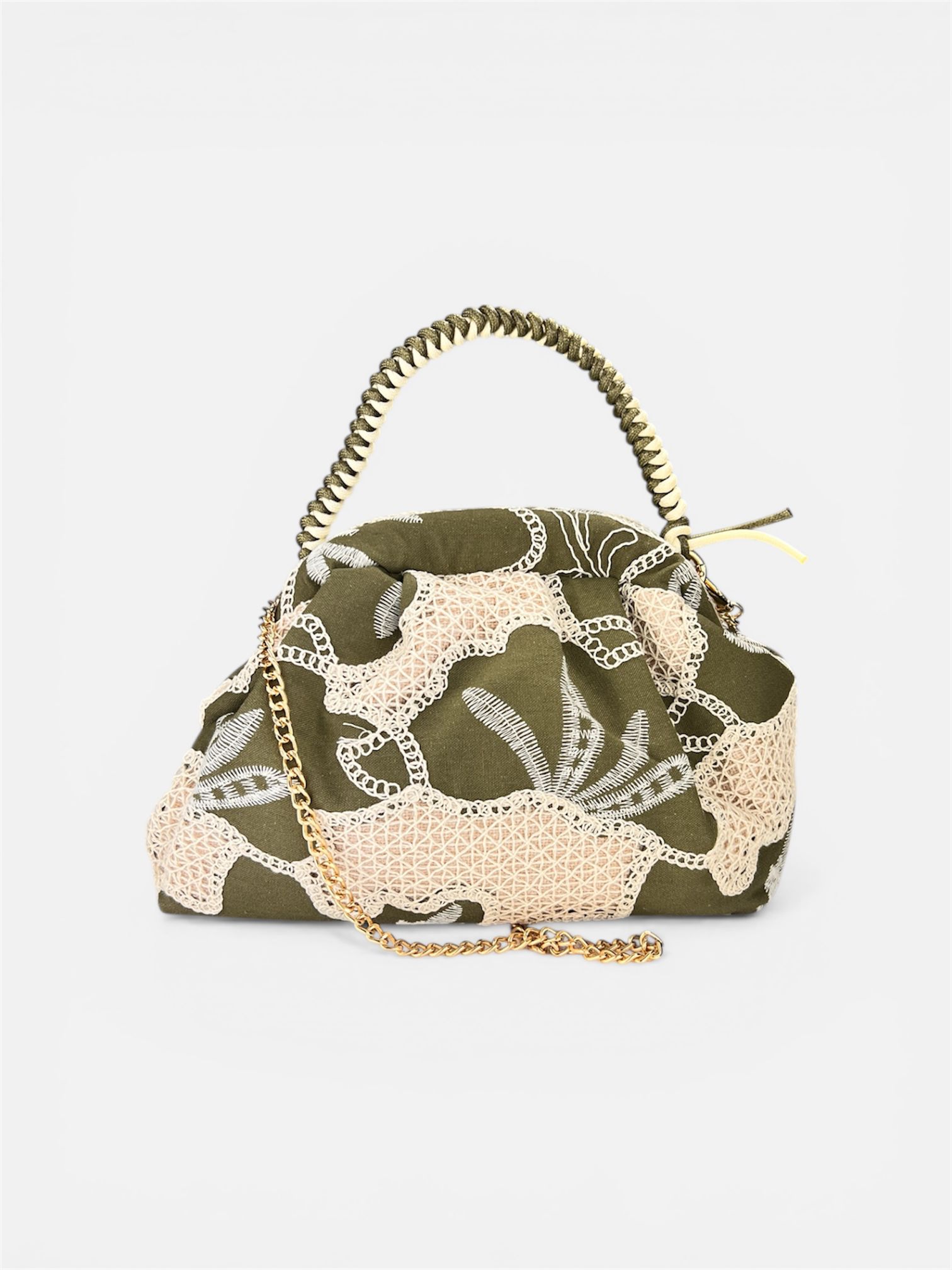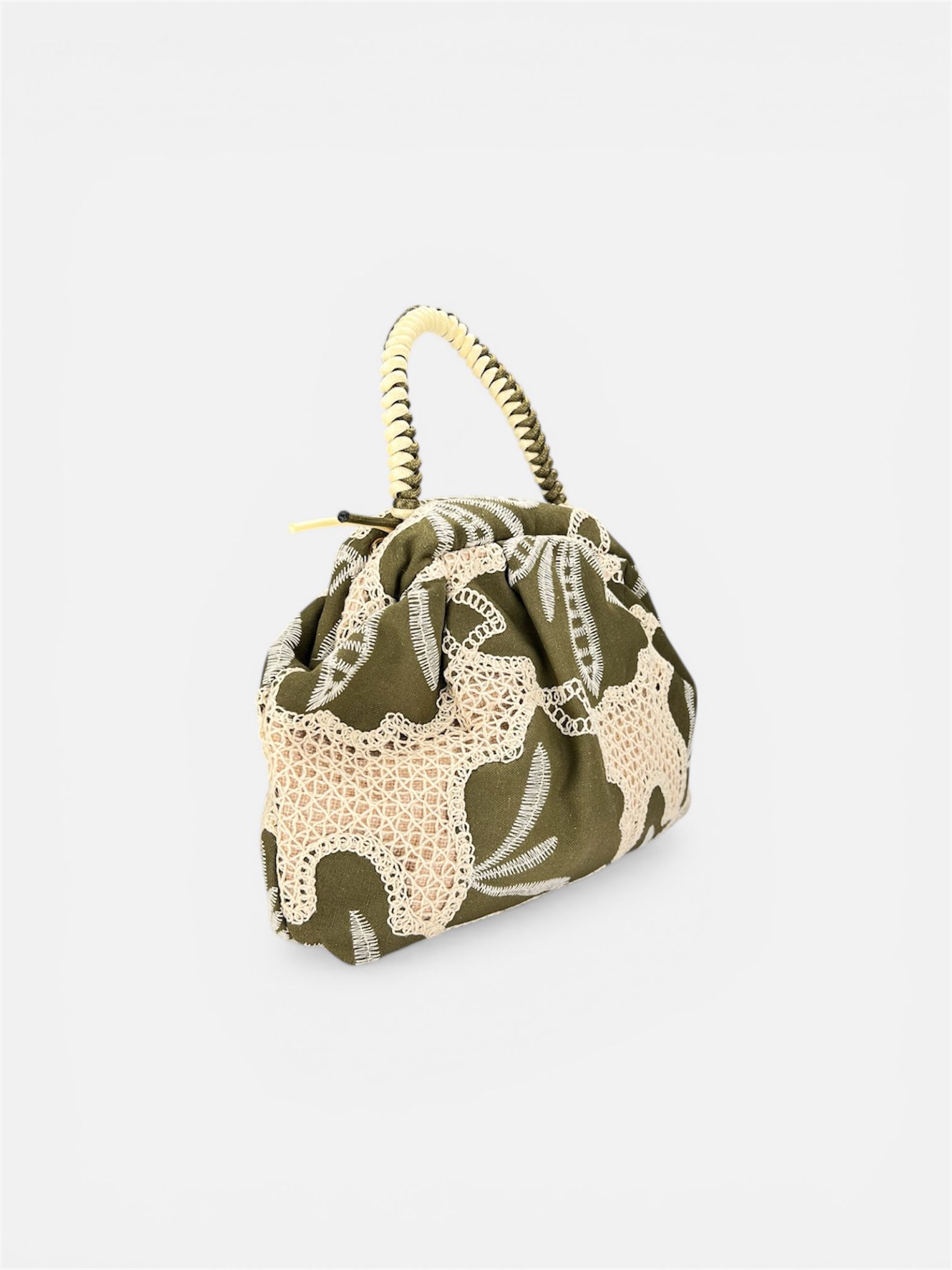 Mini Clutch Cotone Ricamato militare,marrone,tabacco by MYRA
