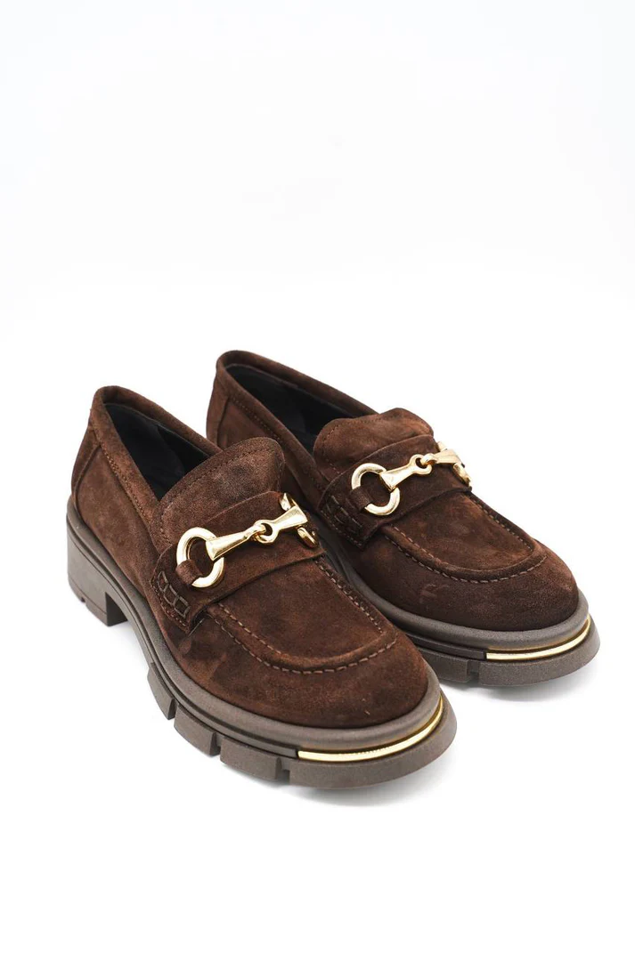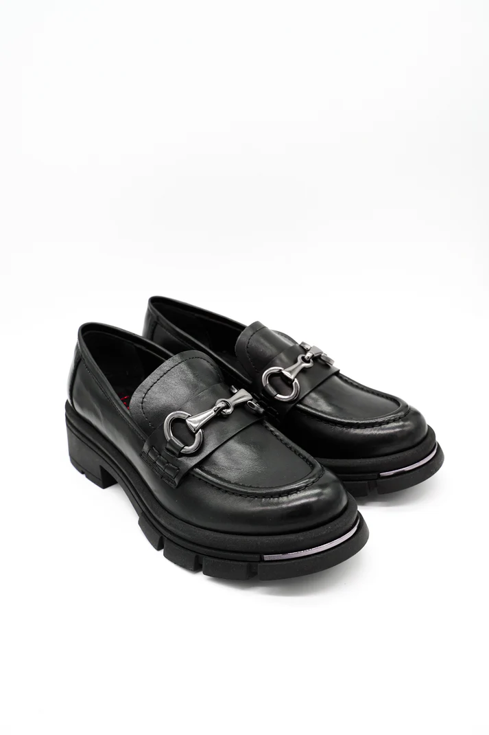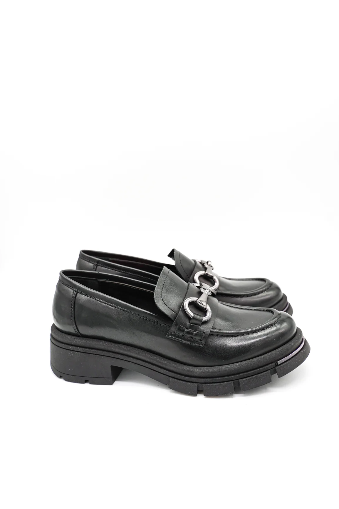 - modello mocassino con fibiia e placca sulla punta suola in gomma