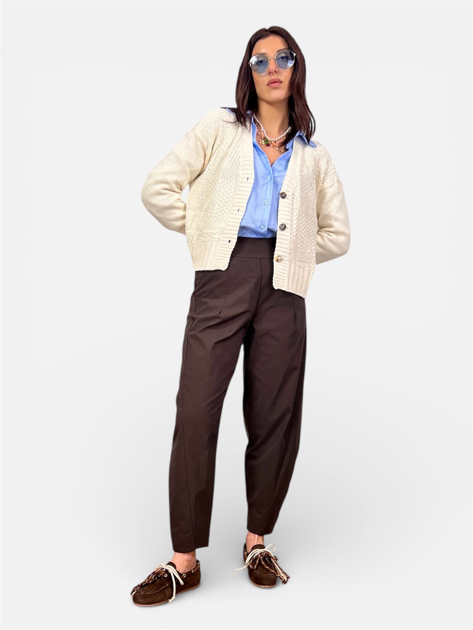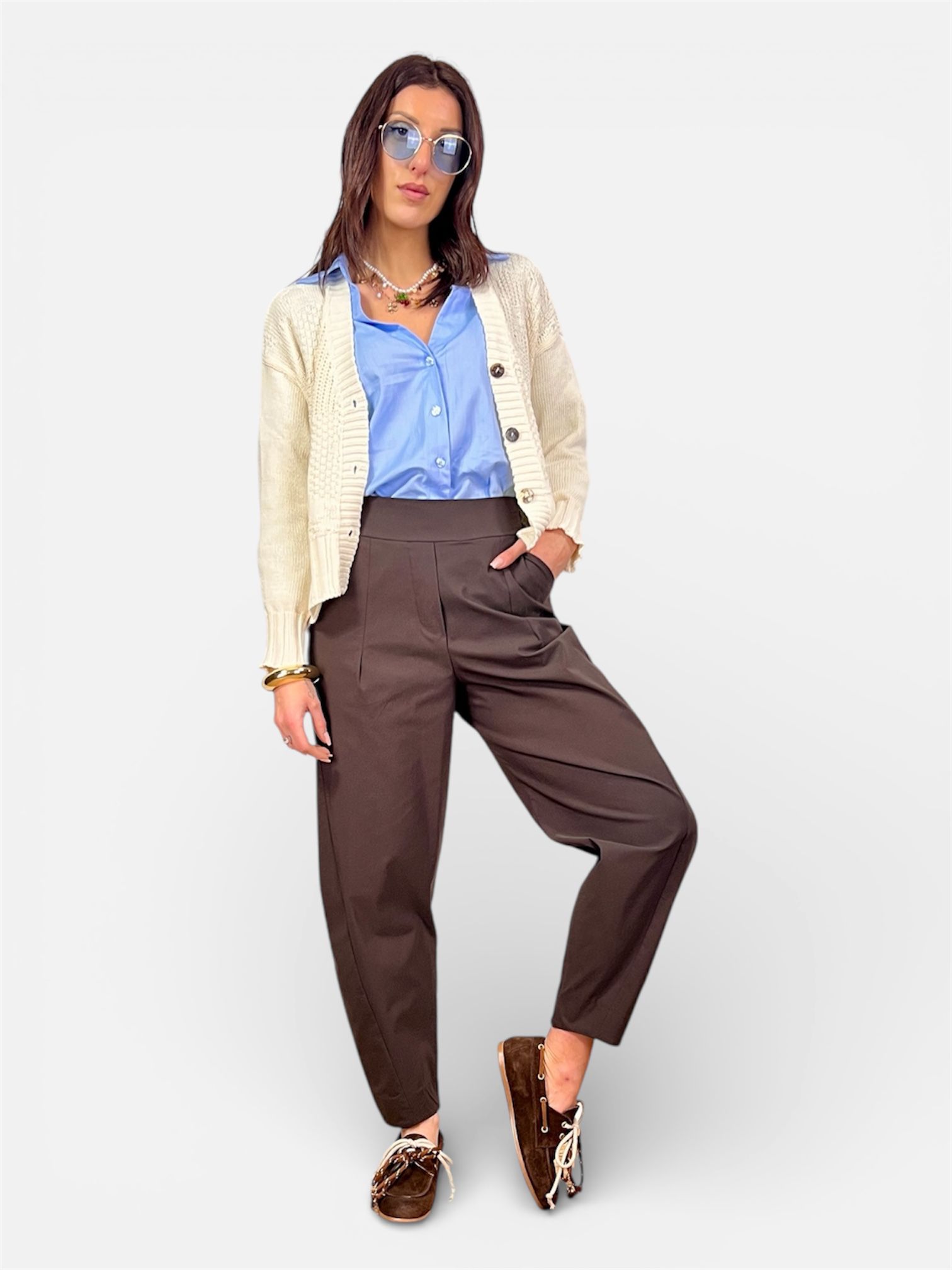 pantalone balloon bengalina cuoio,nero,blu,marrone,bianco,beige KARMA
