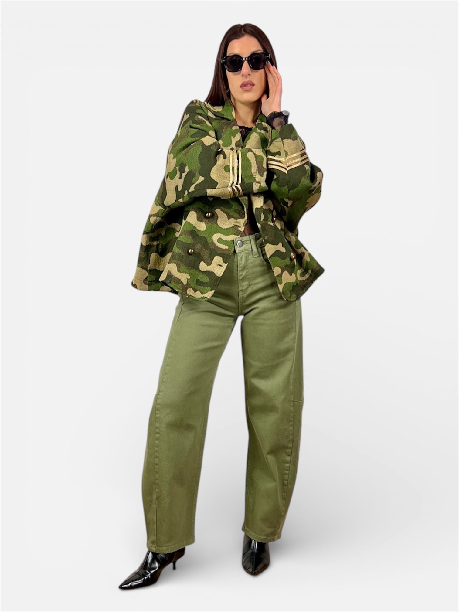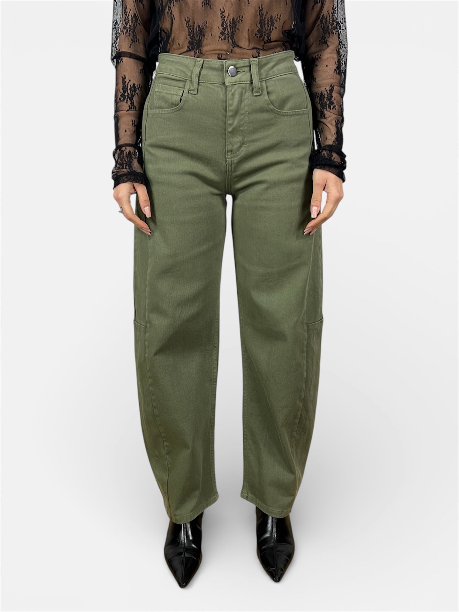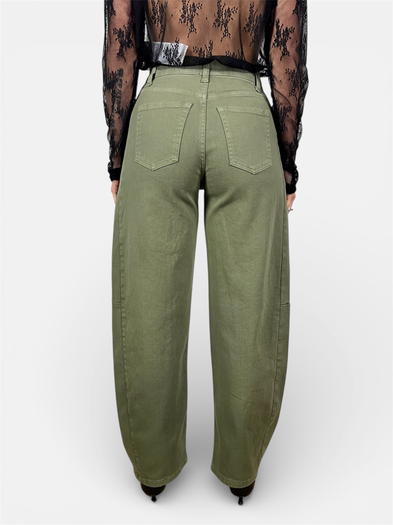 pantalone jeans balloon verde,beige by MYRA