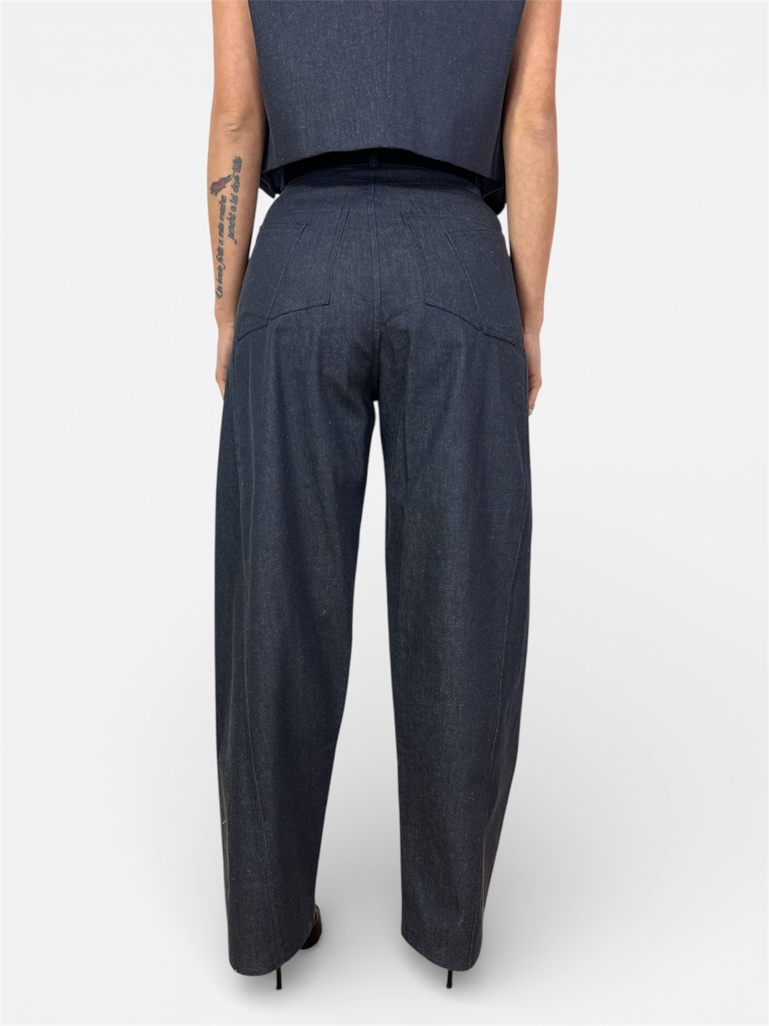Eleva il tuo concetto di jeans con questo modello sartoriale a gamba larga. Un capo che unisce l’estetica urban alla ricercatezza del taglio a palazzo, completo di dettagli iconici pronti all’uso.