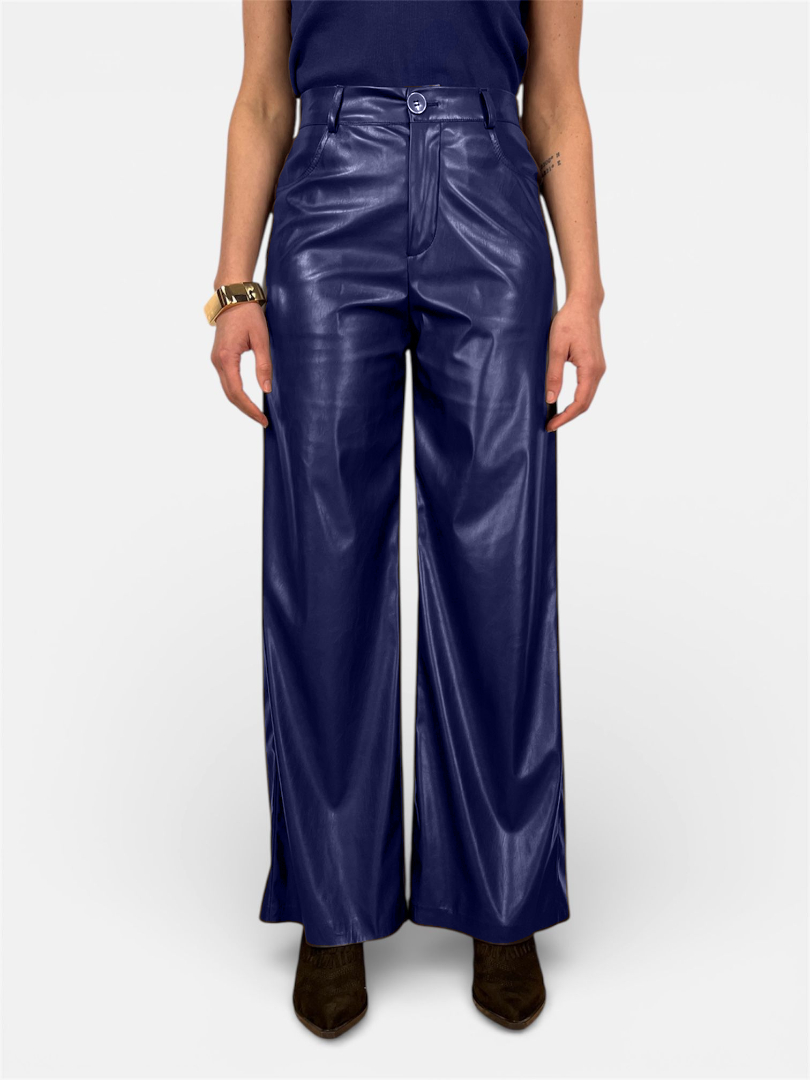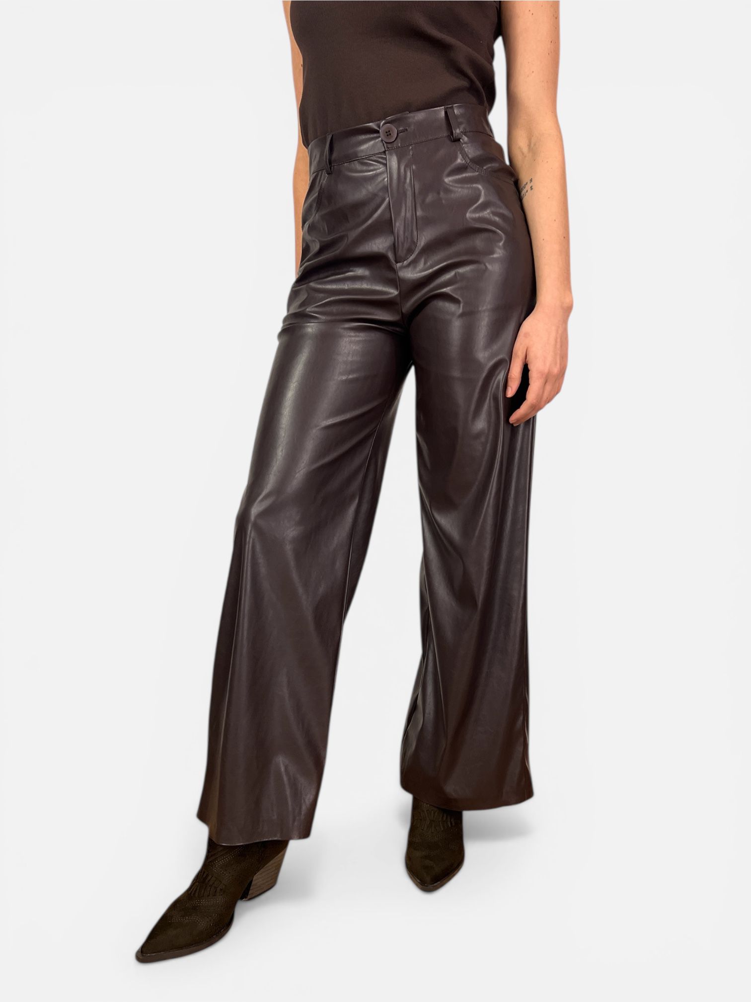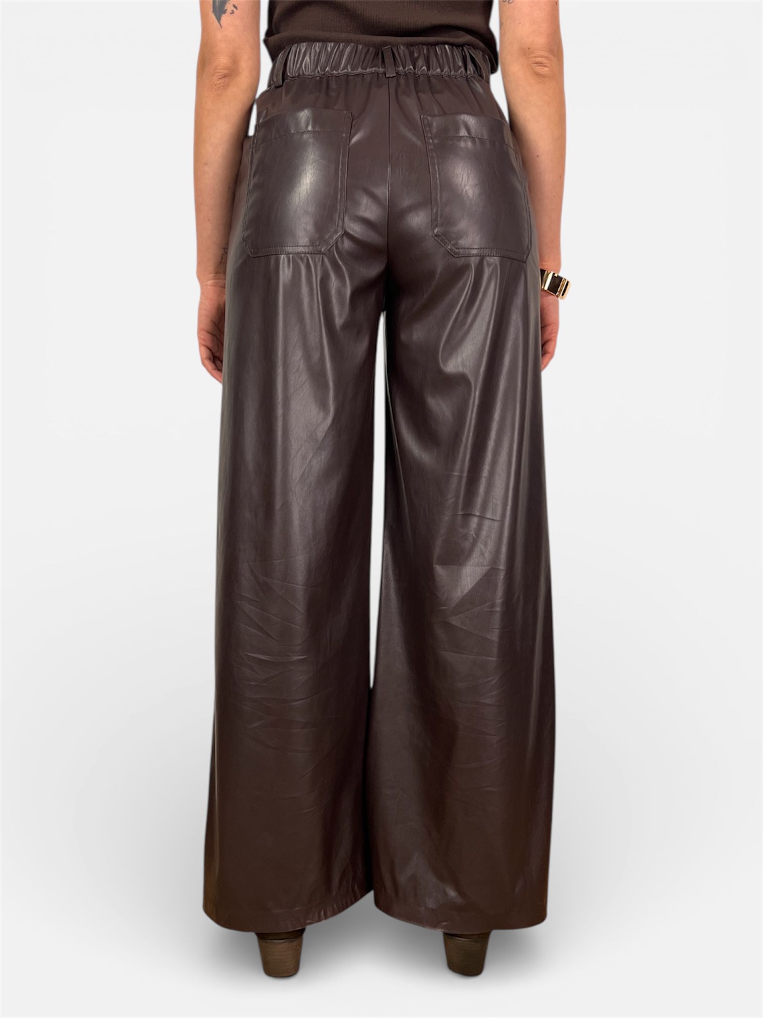 Pantaloni Wide Leg Similpelle marrone,blu SUSY MIX