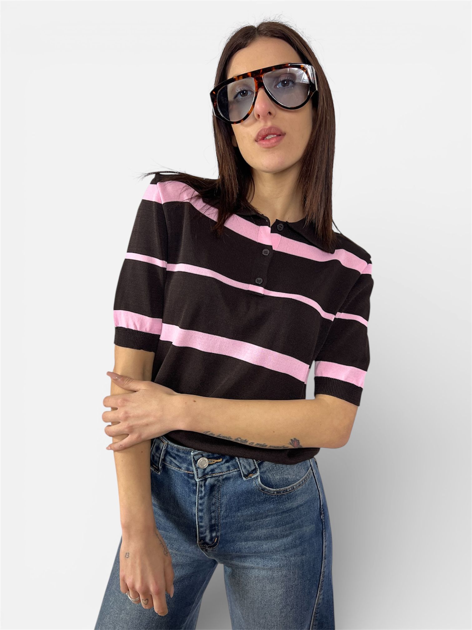 Polo in Filo Righe moro,bianco by MYRA