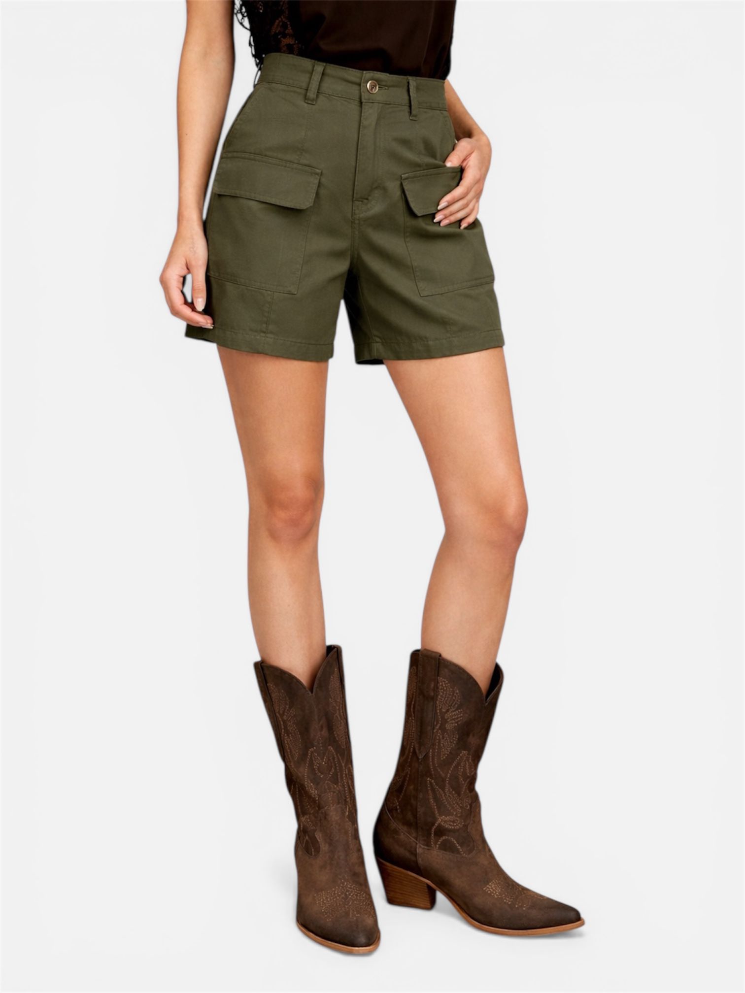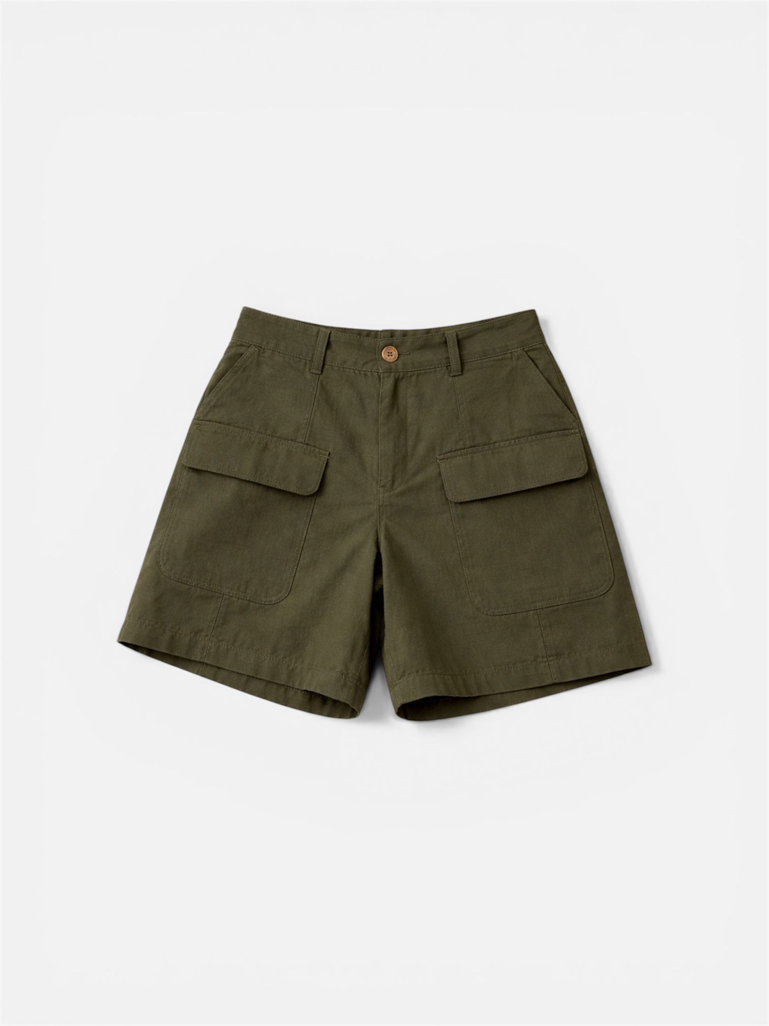 Questi shorts sono un modello cargo caratterizzati da grandi tasche a toppa con patta sul davanti e una linea pulita che si adatta a vari stili, dal casual al safari.