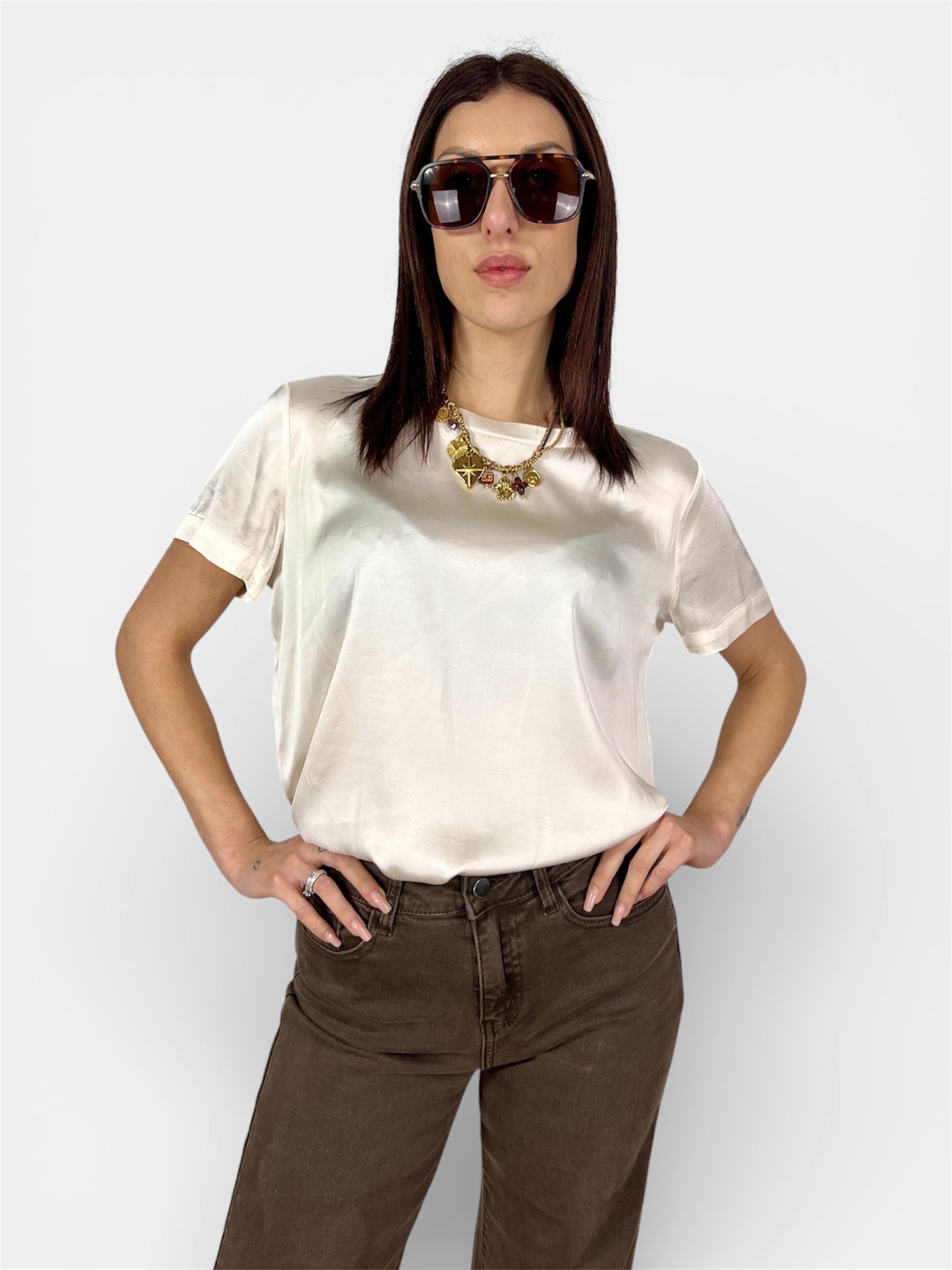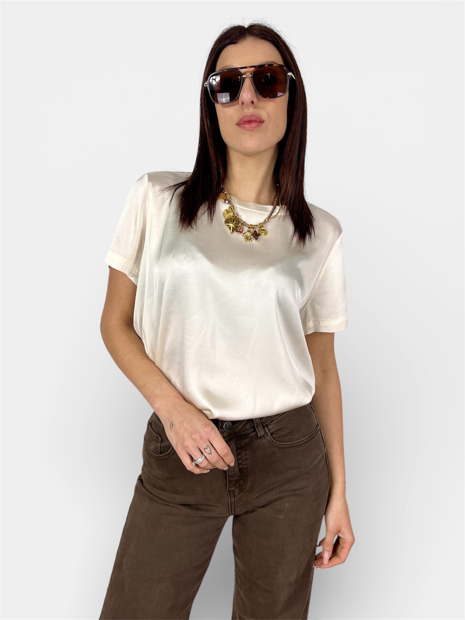 T-Shirt Viscosa Lucida marrone,olio,celeste,avorio,arancio,lime,militare by MYRA